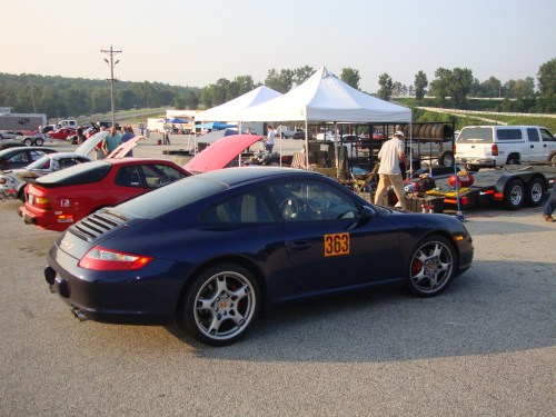 The drivers were divided into notice, intermediate, and advanced groups, and each drove 30 minutes per session. As a novice, with an hour between sessions, I looked at the other cars as they prepared to run or ran. I enjoyed talking with Bryan and his friends.