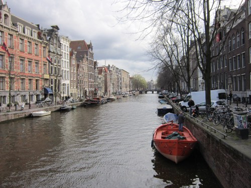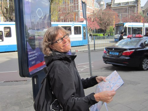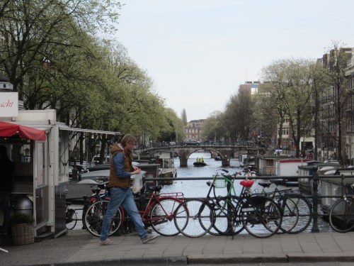 Amsterdam is lovely city. Its row houses, streets, and canals are an ensemble that suggests a real community, with shared values and history. It seems well-organized and clean. But very lively! We’d heard that there were more bikes than cars, which is true, but hadn’t realized that heavy bike traffic can be hazardous to pedestrians. We had some close calls, and I eventually began to start at tinkling bicycle bells as though they were blaring car horns.