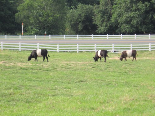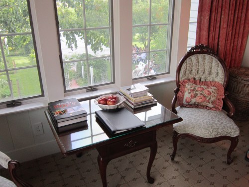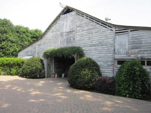 Fearrington is in Chatham County, one county over from us — about a forty minute drive from Raleigh. It was once a working farm, and still has a barn, a silo, and some pastures with unusual oreo-striped cows. It also has a few shops and our destination, the Fearrington Inn, where we had a sumptuous and charming room. It had a bowl of fresh fruit, and a bar of dark chocolate. After settling in, we walked across the square to the Spa, and had a couples massage — our first ever! It was extremely relaxing. Afterwards, we went into a housewares shop and perused the glassware and various objets, and smelled the floral candles.