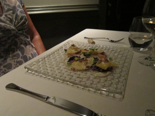 In view of Sally’s and my NDA, I will not be writing about certain intimacies of our weekend, except for this sentence. That evening we ate at the Fearrington Inn, one of the finest restaurants in the region. When last we were there, several years ago, I’d found the food excellent but the service mannered and fussy. But that was not my impression this time: the food was excellent, and the service was both professional and friendly.