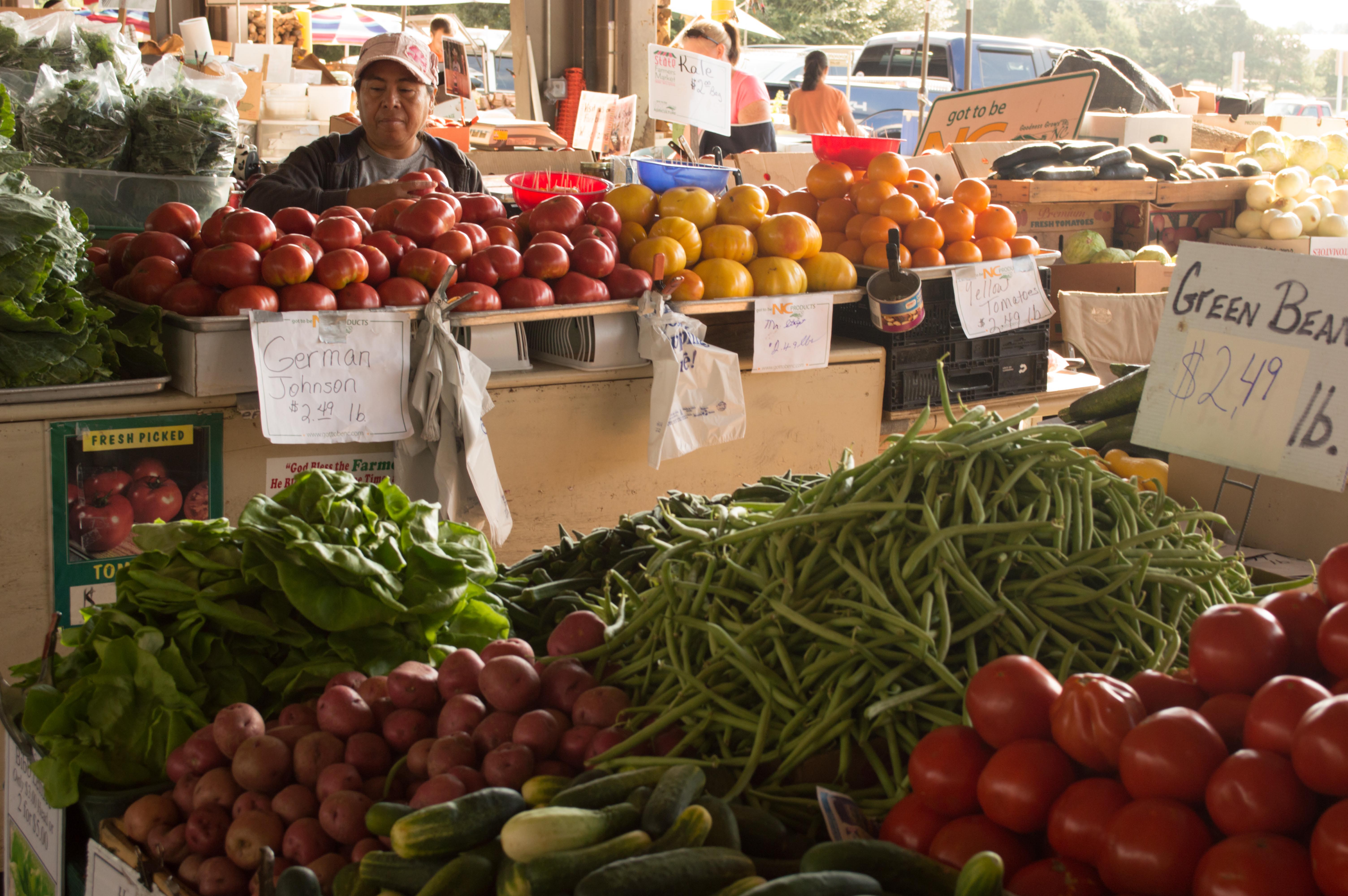 It was a particularly intense week at work, and I was glad we hadn’t planned any major travel adventures for the weekend. The weather turned cooler on Friday night, and Saturday morning was sunny when I went over the N.C. farmers’ market. It was colorful, with gorgeous squash, peppers, beans, tomatoes, and apples. I bought some kale and collard greens for smoothies and a basket of peaches.