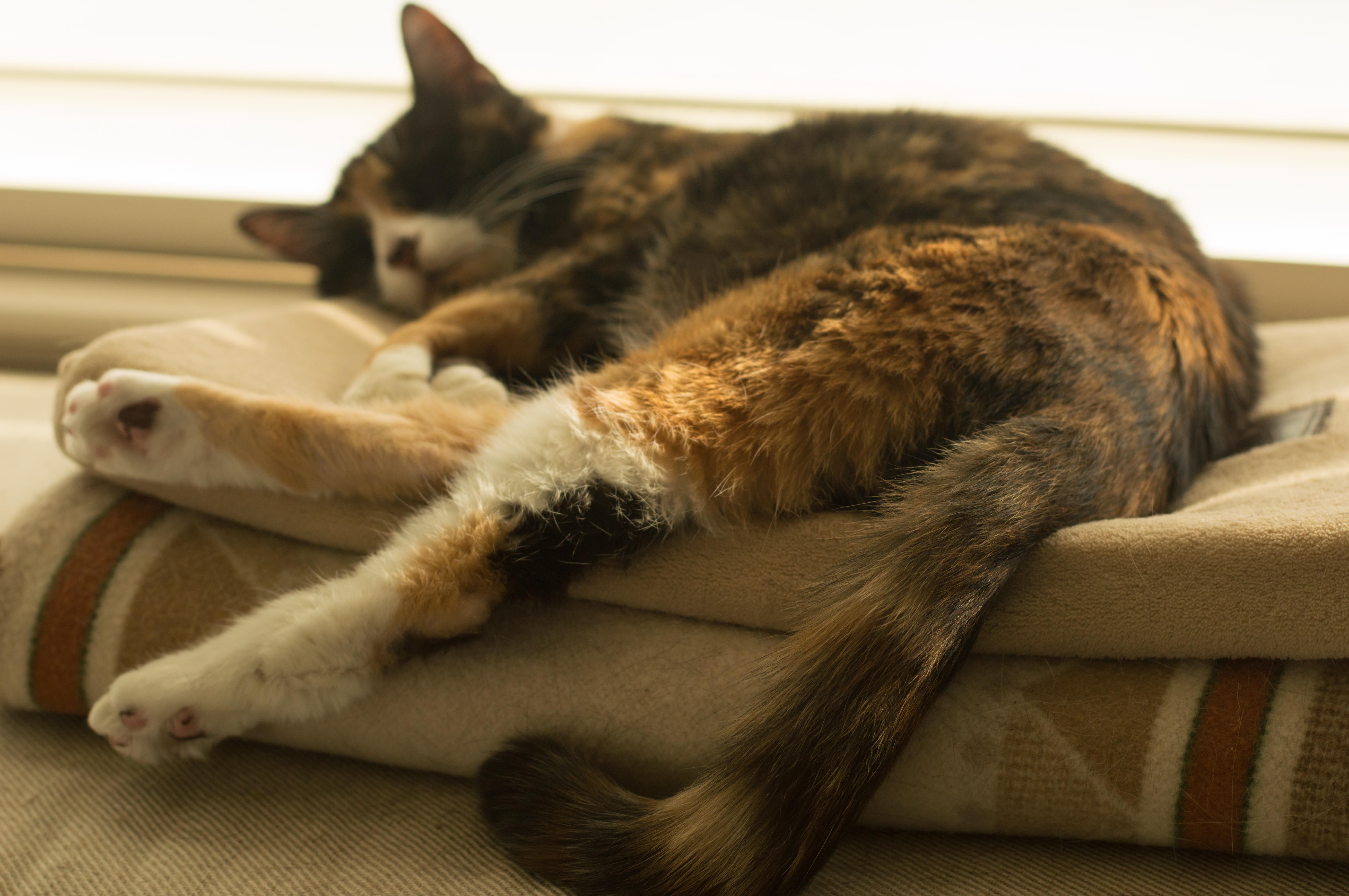 This week Sally spotted this bumper sticker: Life is a little better with a cat. That isn’t a very grand claim, which is what makes it appealing. “A little” seems about right. Our three (Phoebe, Isabel, and Rita) have been good sports in serving as my models.