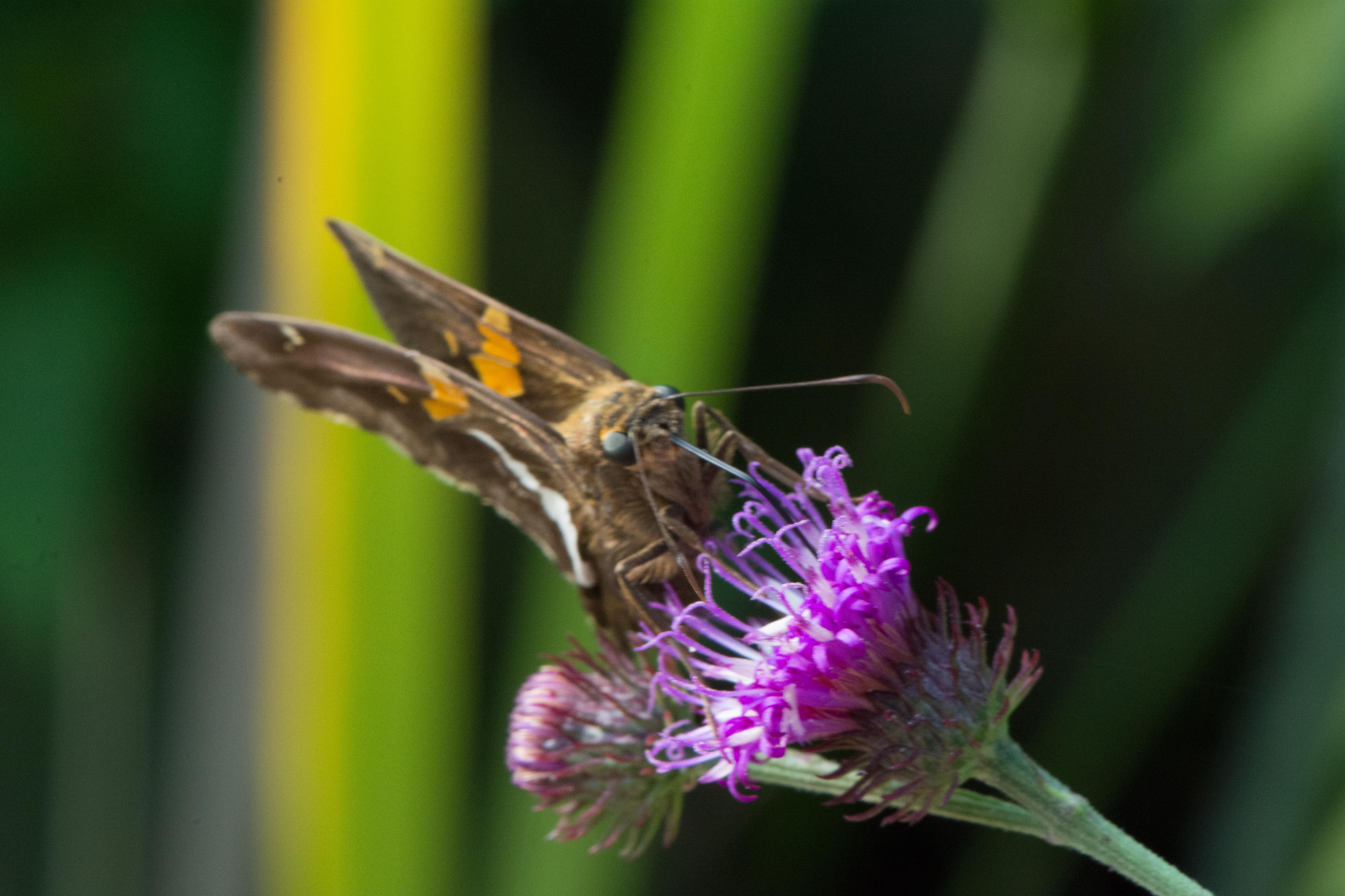 After work on Friday I drove up to Raulston Arboretum to check on the flowers and insects. The rose garden was gone – nothing there but dirt. But there were still plenty of things growing, and bees and other insects hard at work. I particularly liked this uninhibited butterfly.