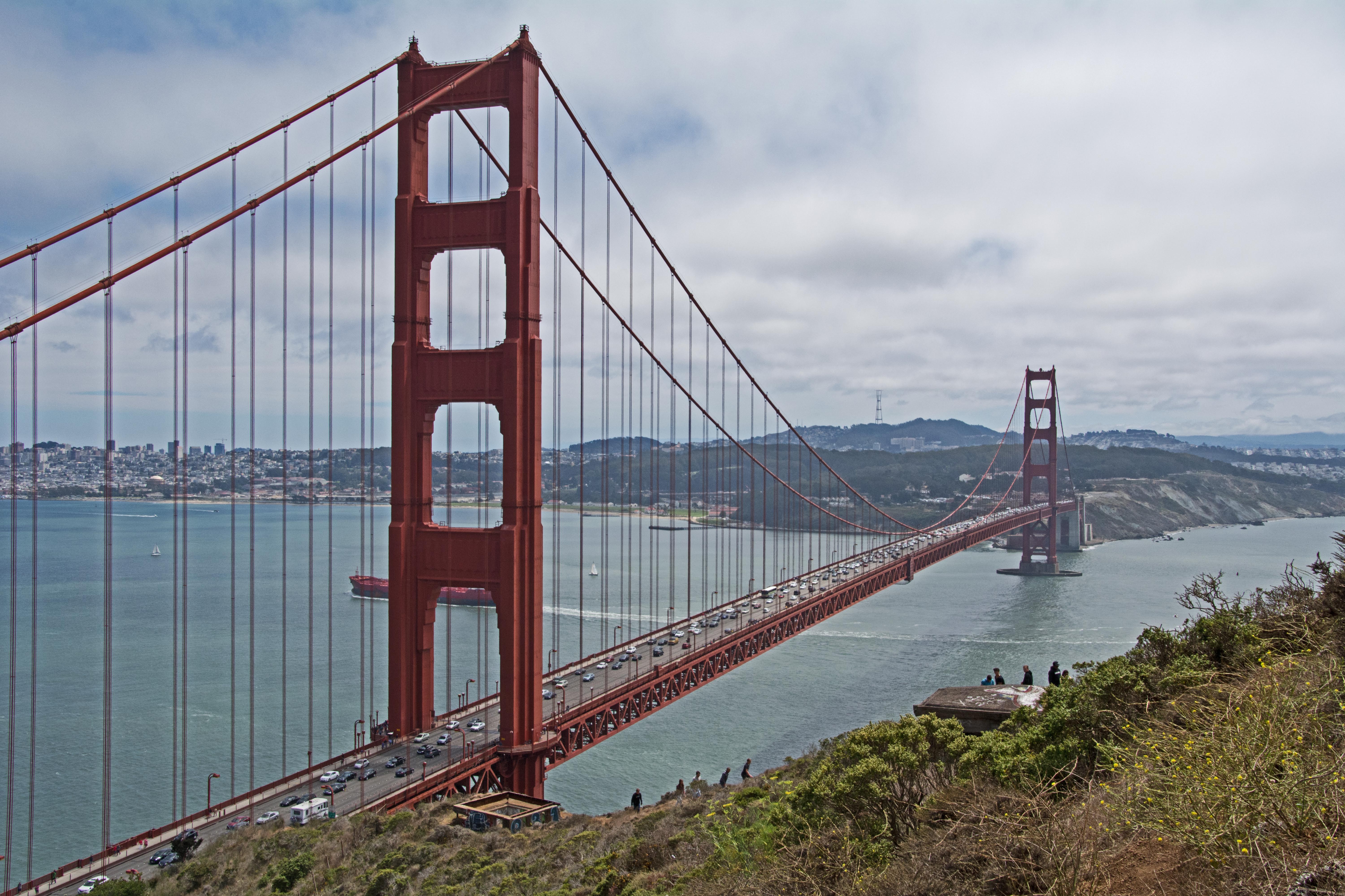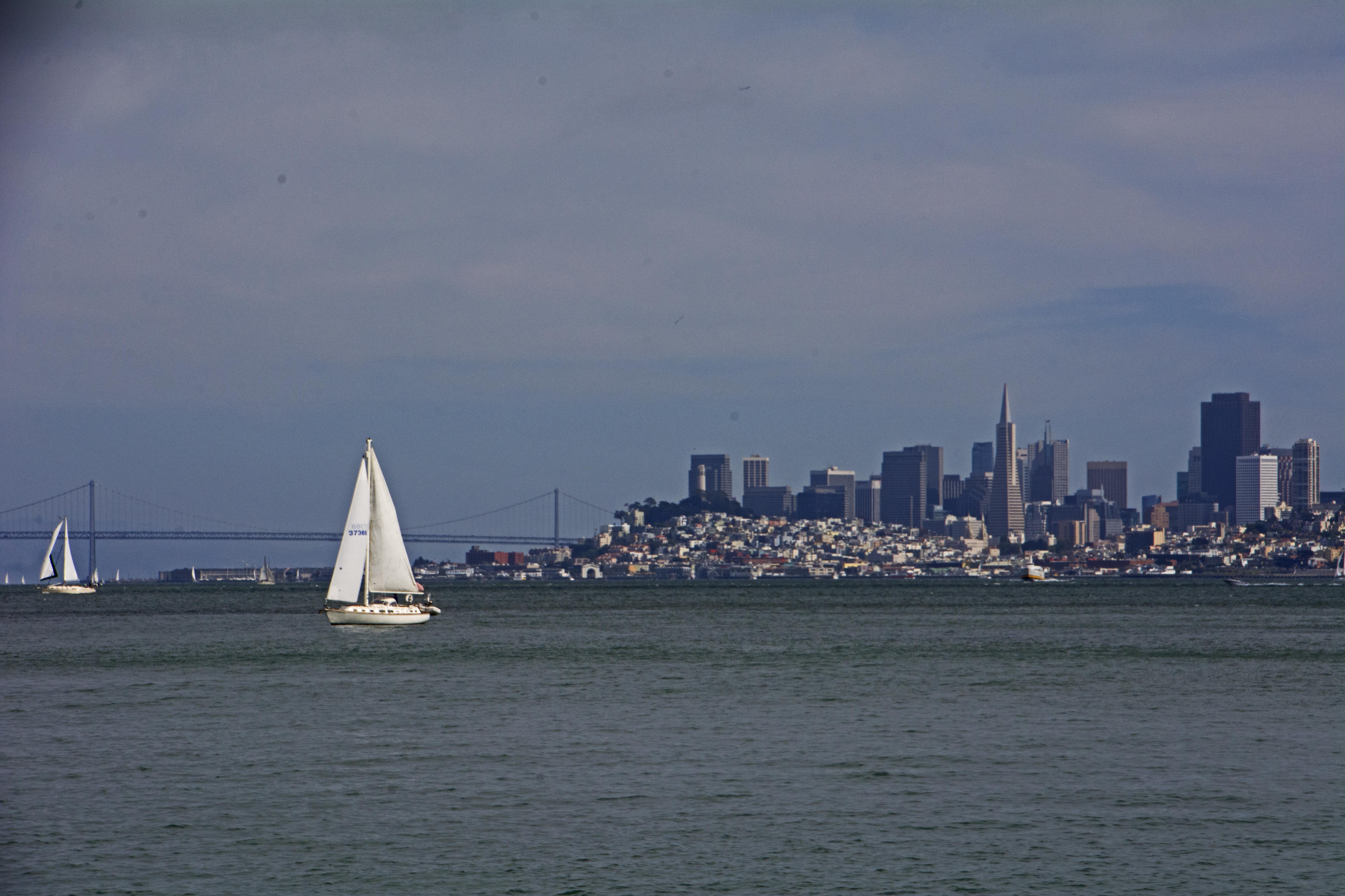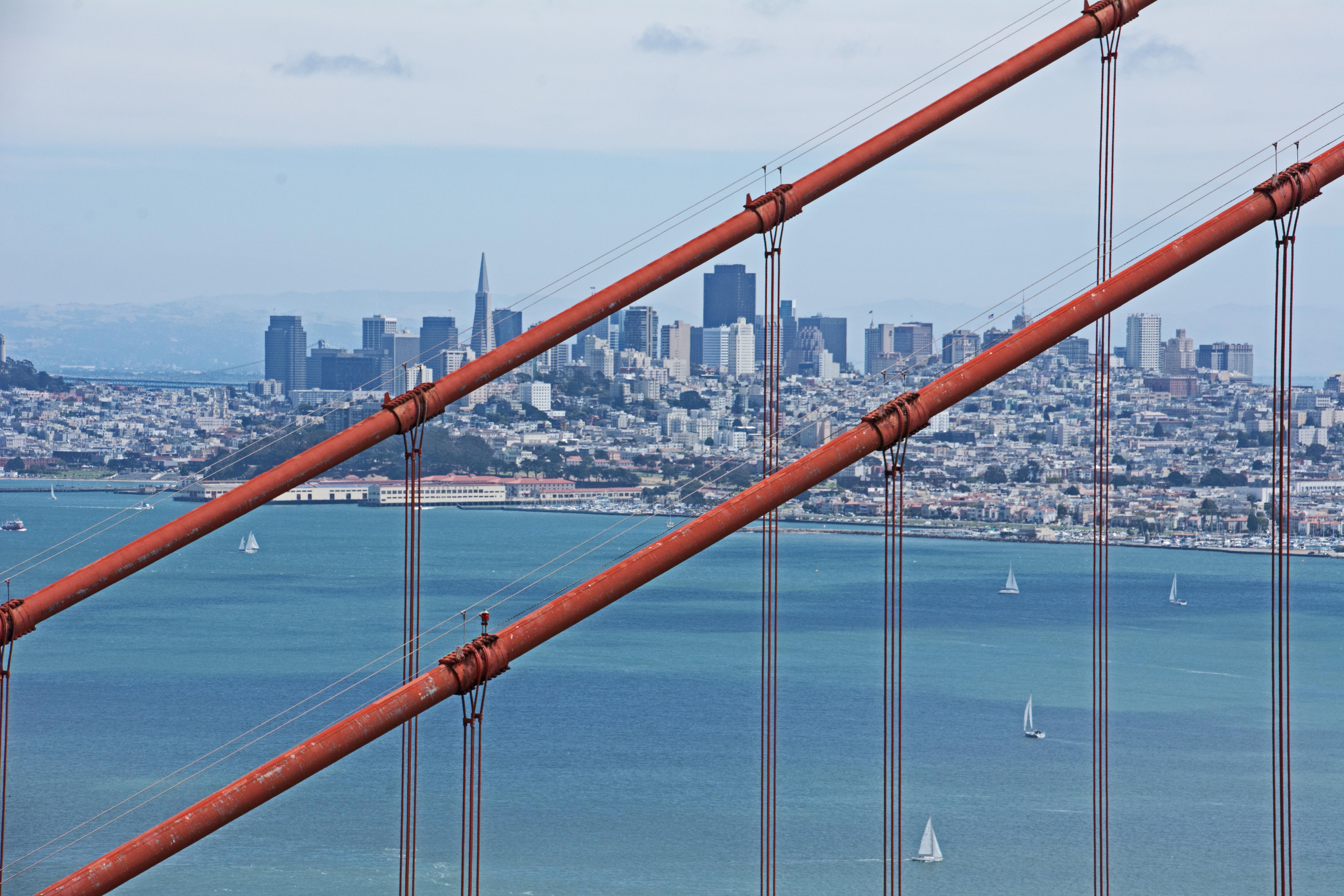 The weather was cool and windy, and the skies were extremely changeable, transforming from overcast to partial sun to dense fog in the space of a few minutes. There were, by moments, amazing views of the bridge, the bay with skimming sailboats, and San Francisco. Some high-spirited young people asked me to take their picture with their Polaroid camera, which I was happy to do.