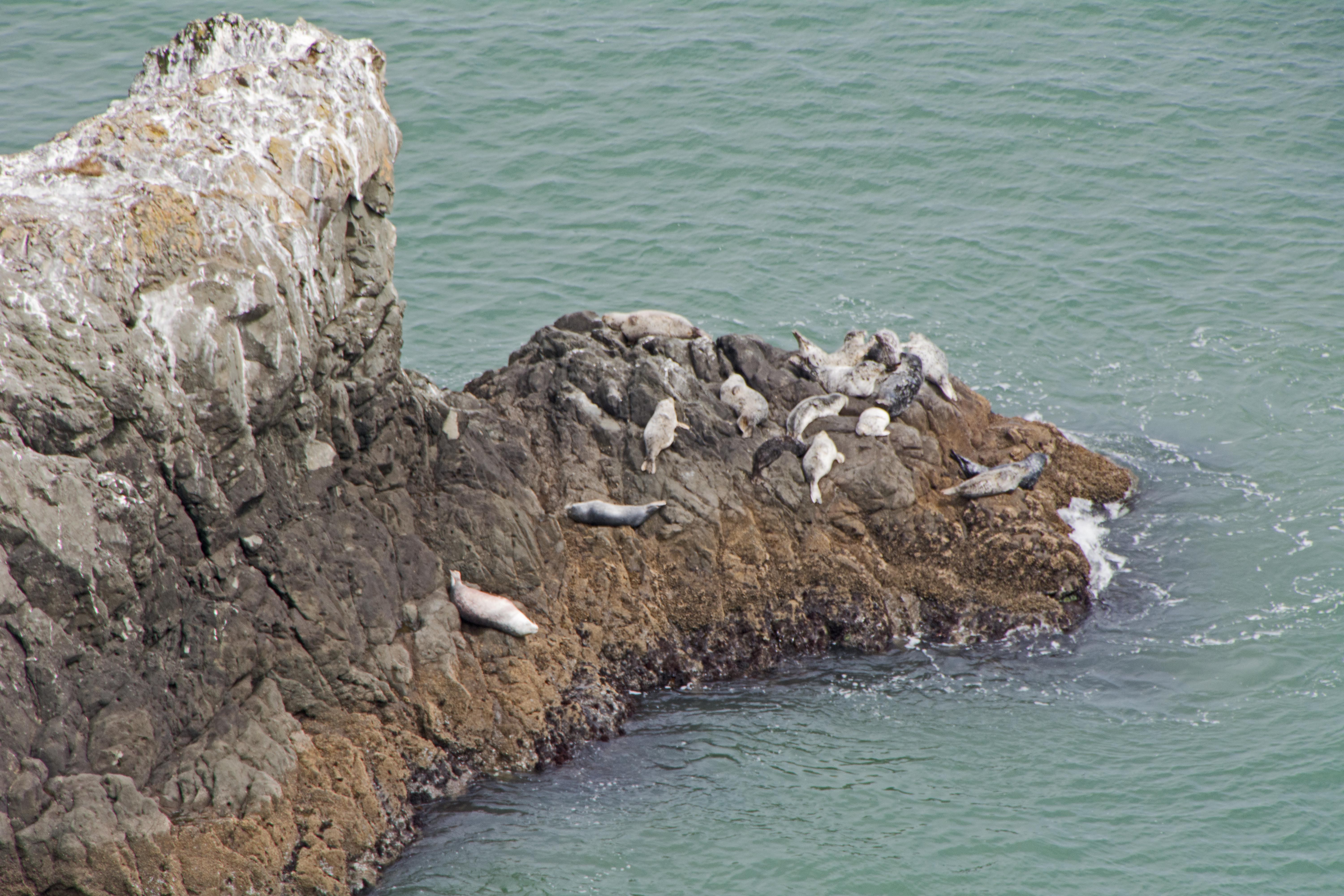 Then I drove on a very steep and winding road toward Point Bonita, where I hiked down to the lighthouse. There were harbor seals resting on a rock in the bay. From the suspension bridge to the lighthouse, there was a lovely view of cliffs coming down to the Pacific.