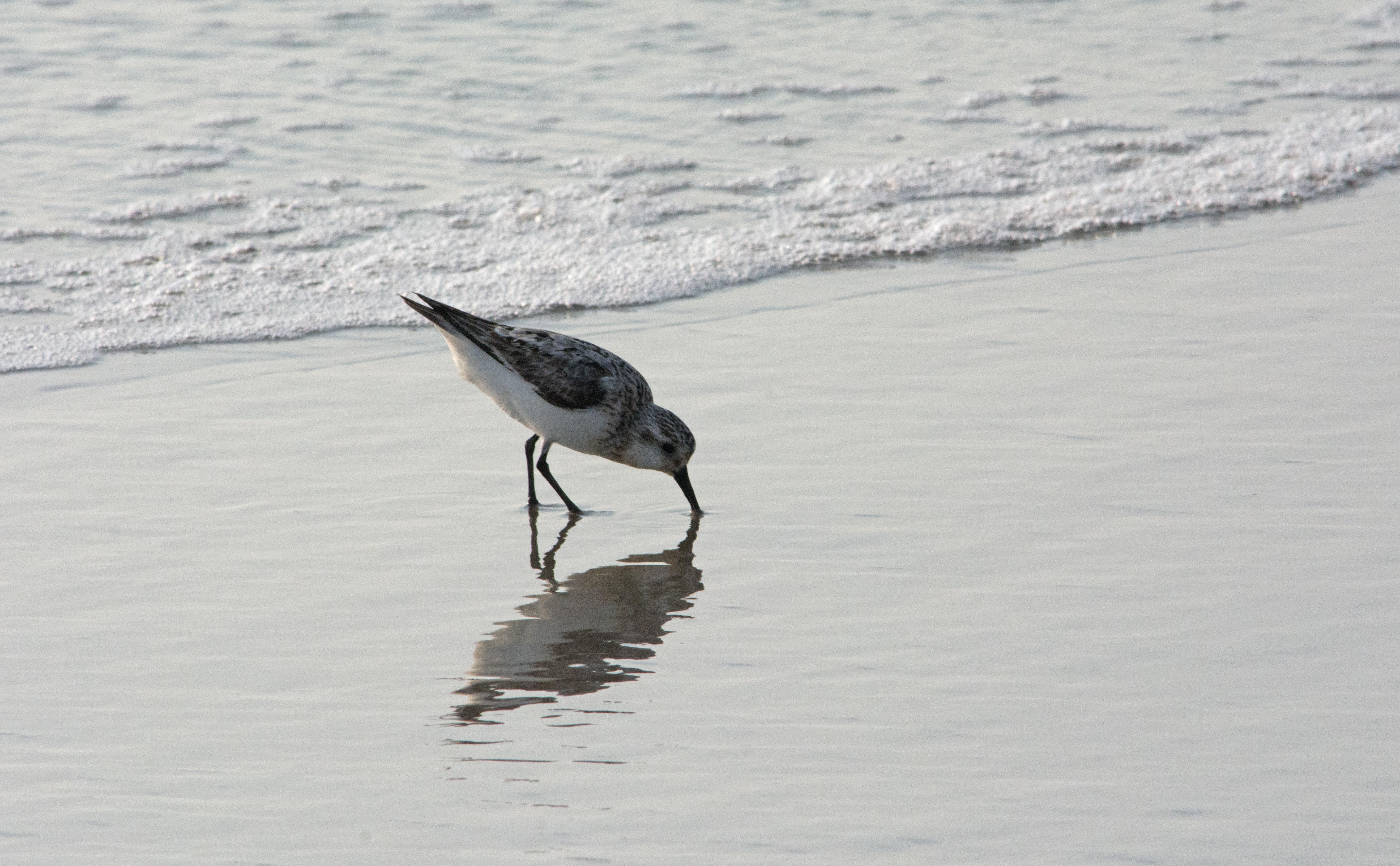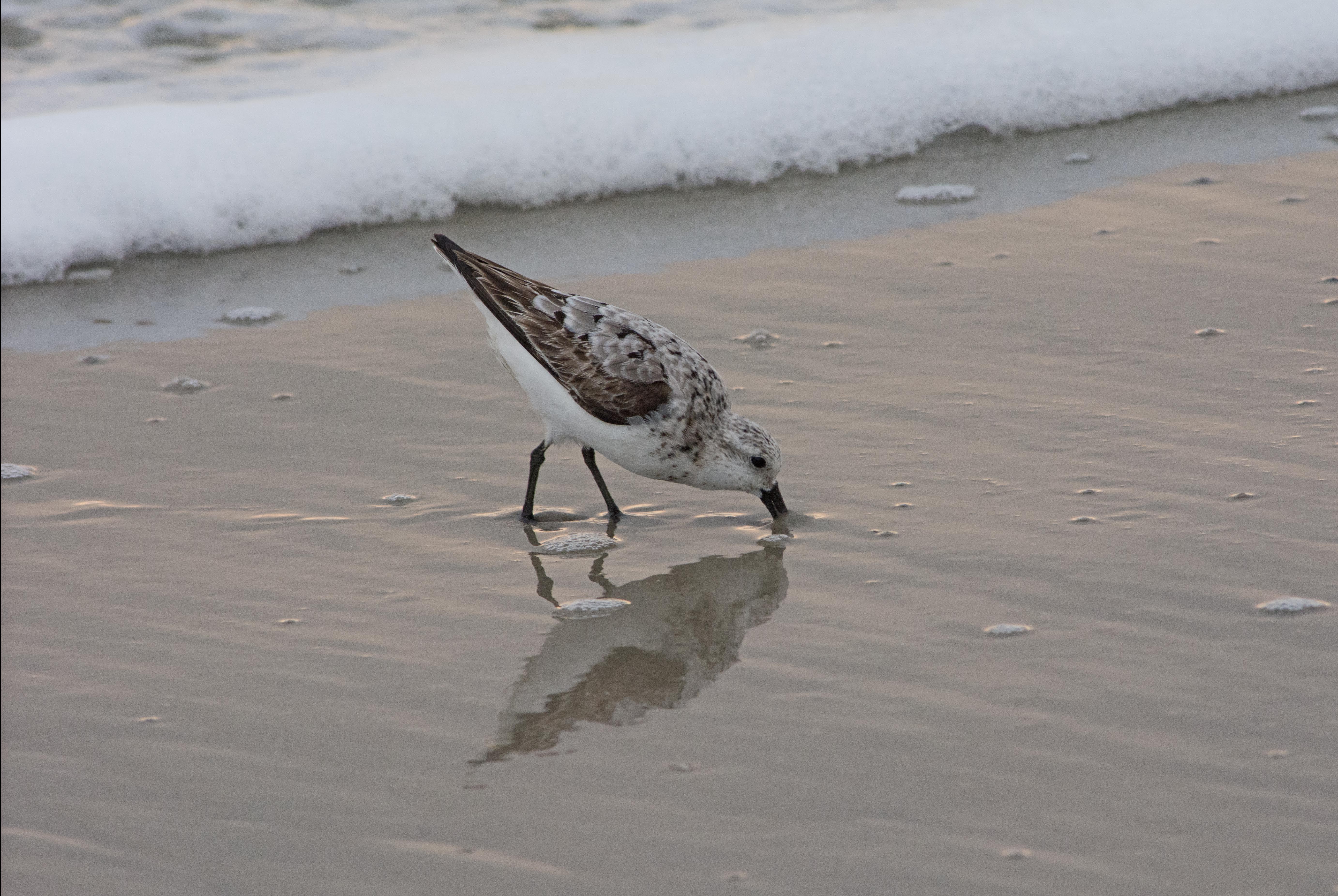 Each morning I got up around sunrise and took a long watch on the beach with my camera. I saw mostly sanderlings, hardworking little shorebirds that move with comical quickness. I took hundreds of pictures of them. Here are a few that I especially liked.