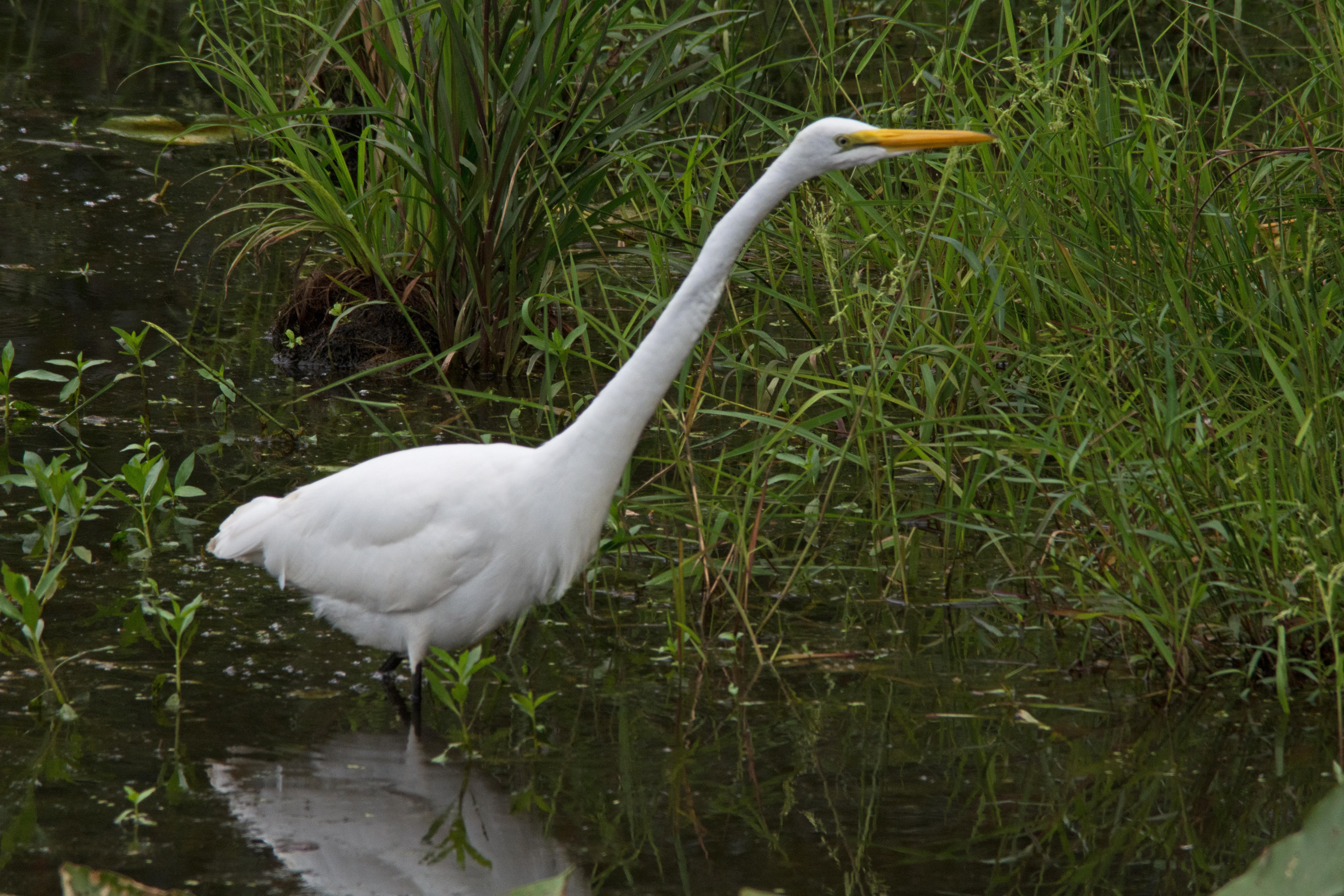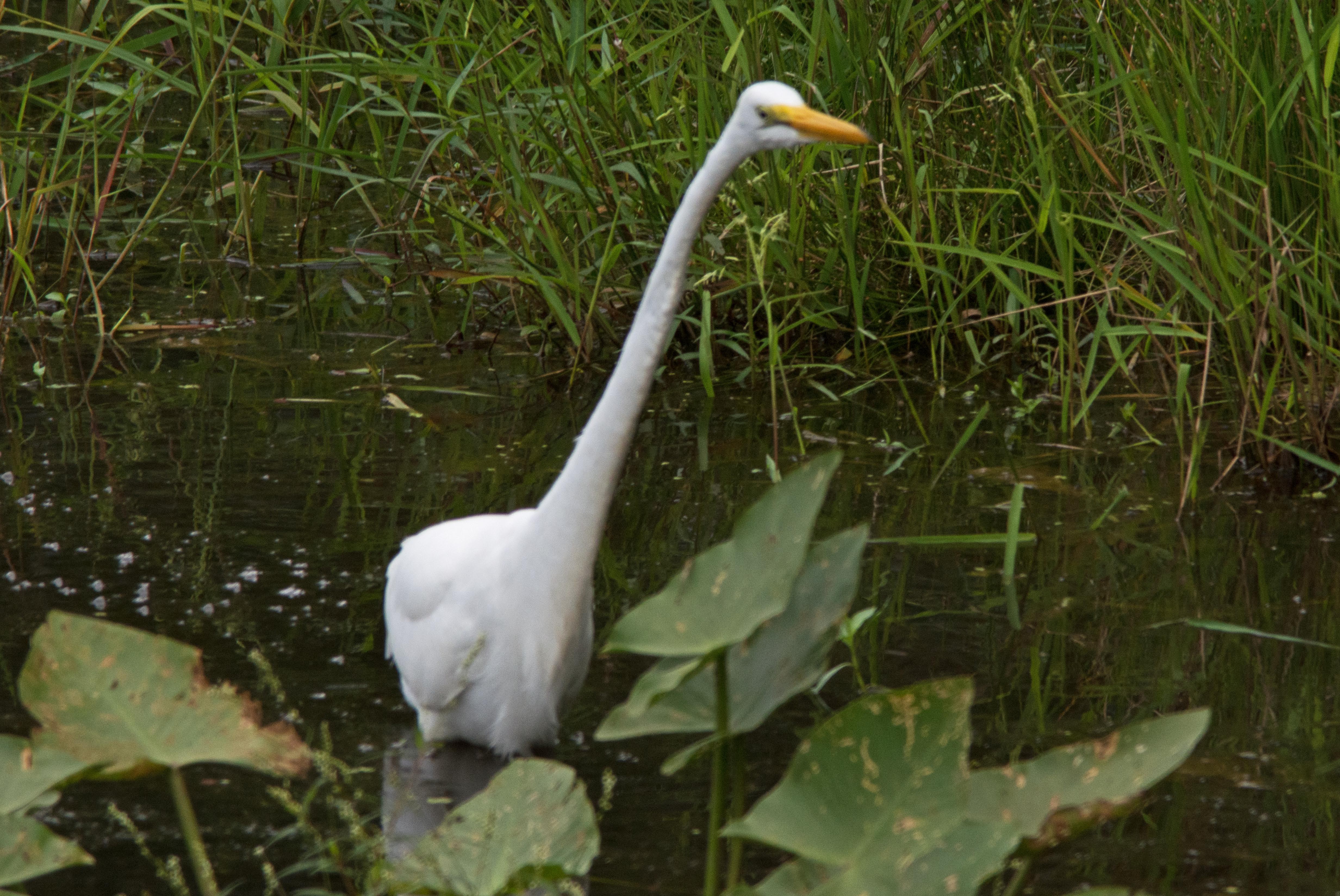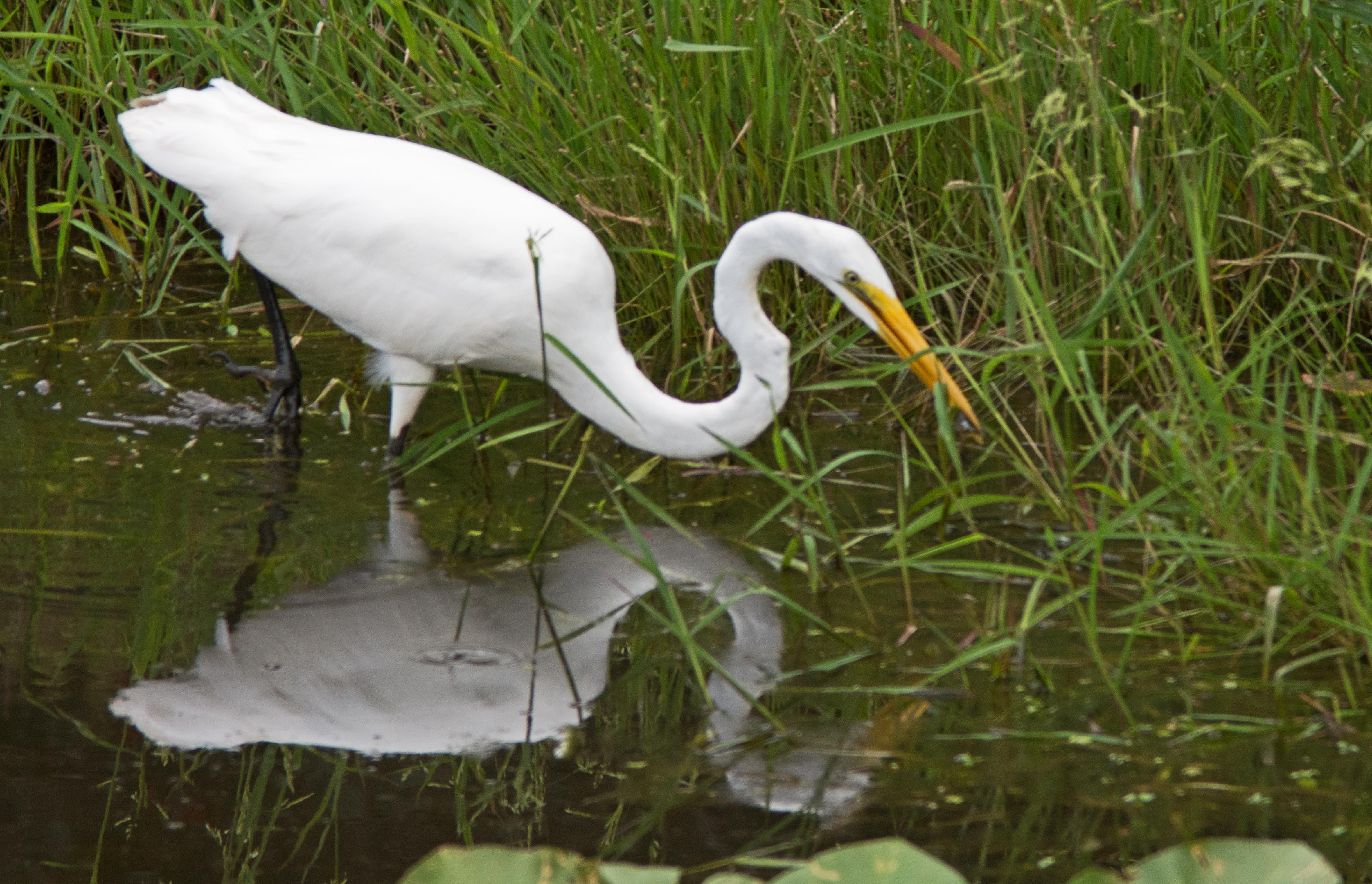 These pictures were taken this morning (September 14, 2014) at Yates Mill Pond in Raleigh. The great egret is a bird we don’t see every day around here. I watched this one hunting for a half hour or so, and was enraptured.