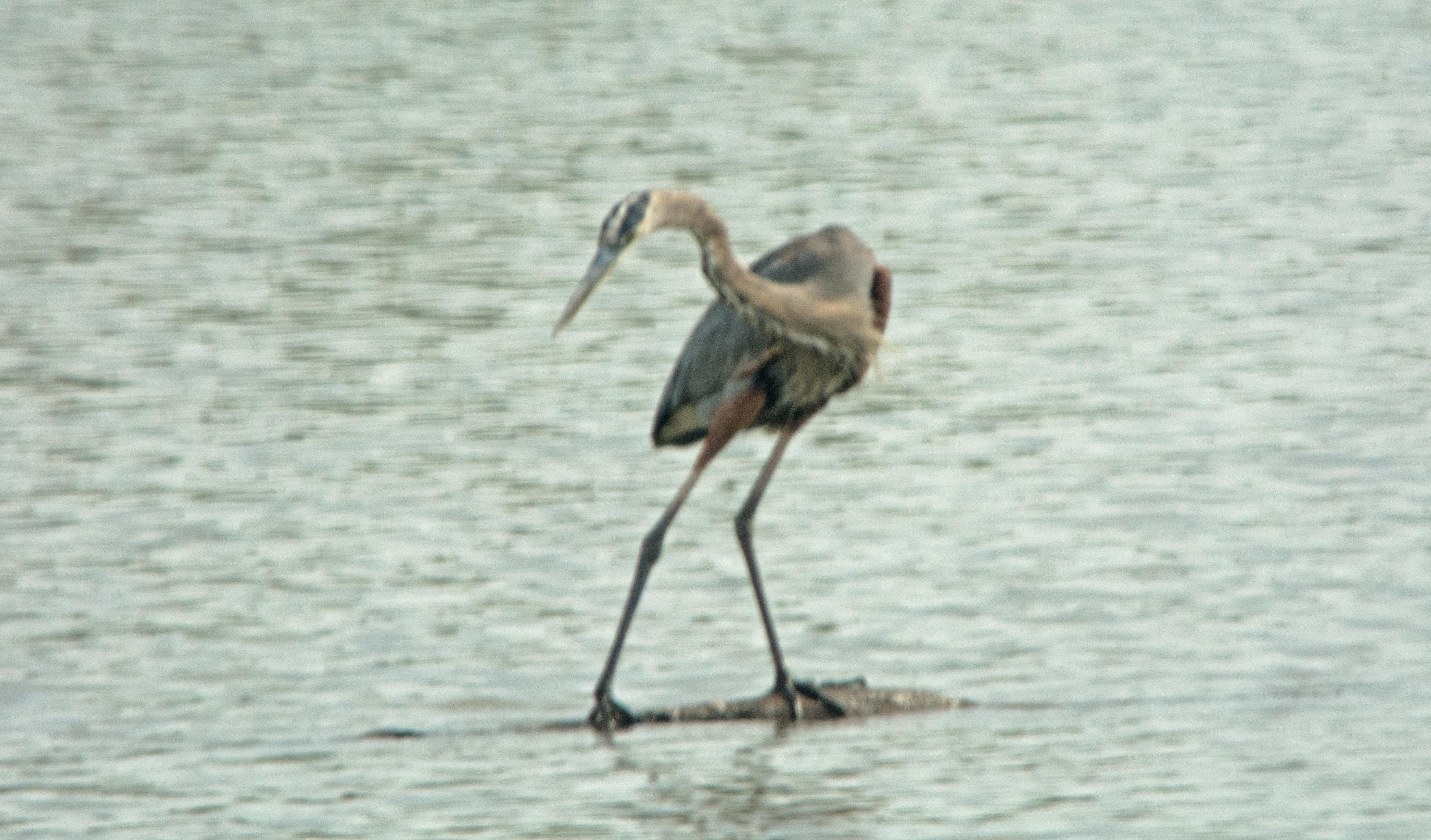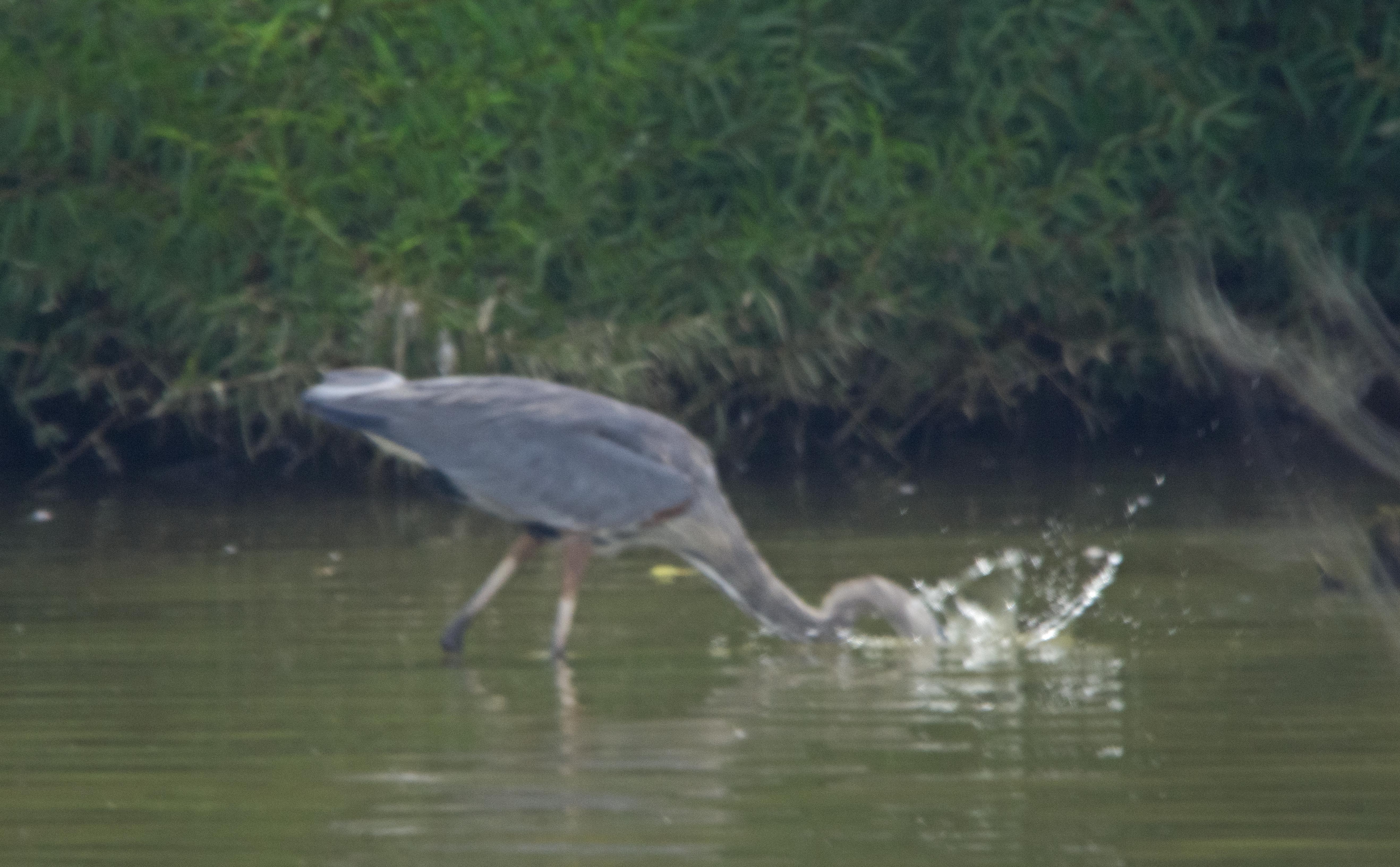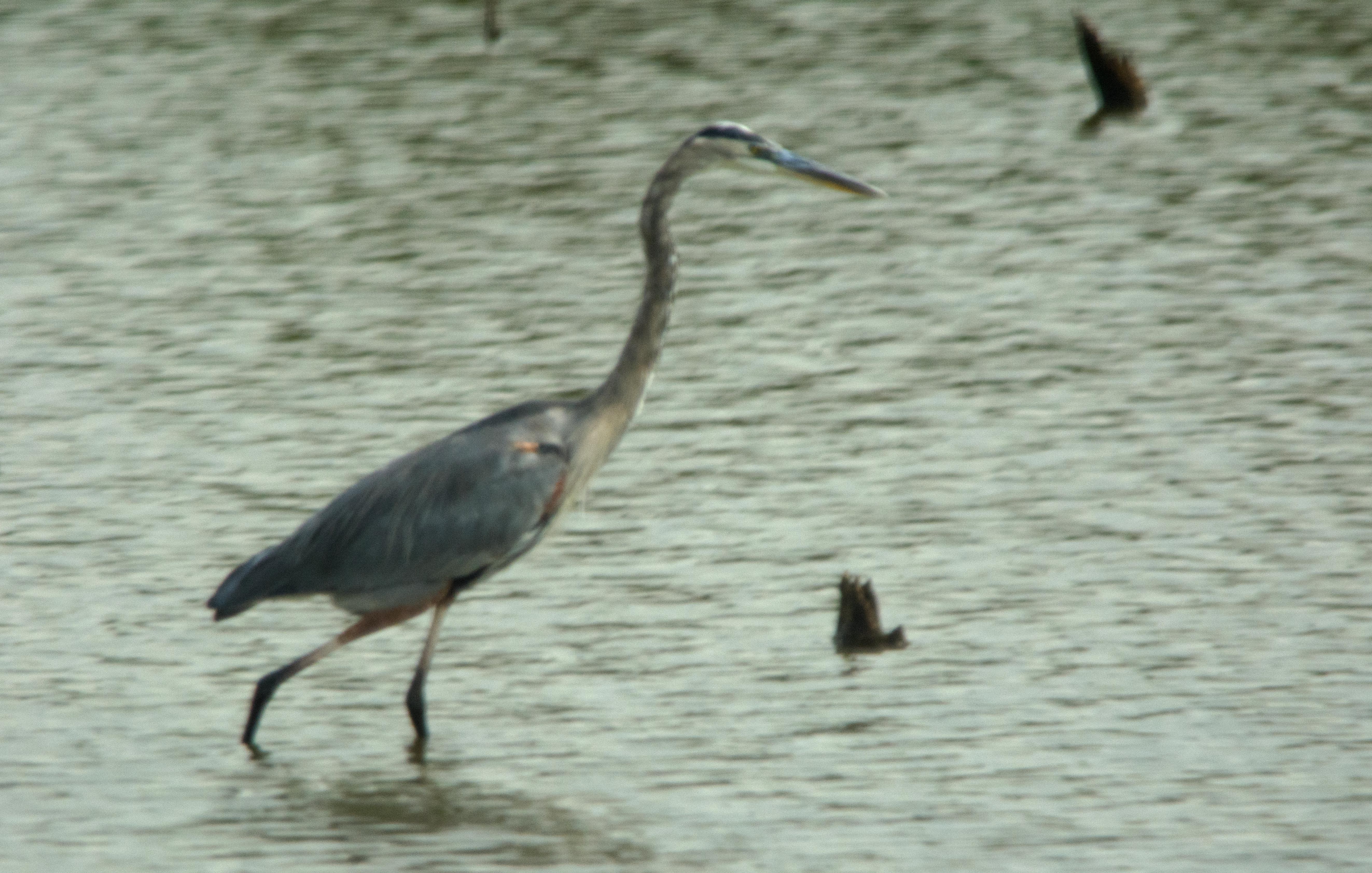 Sally had mentioned to me that she’d taken Stuart (our dog) for a walk up there recently, and seen a great blue heron and a great egret. They were still around fishing when I got there with my equipment last weekend. I used my long Sigma zoom lens (150-500 mm) with a 2x tele converter, a heavy set up that required a tripod.
