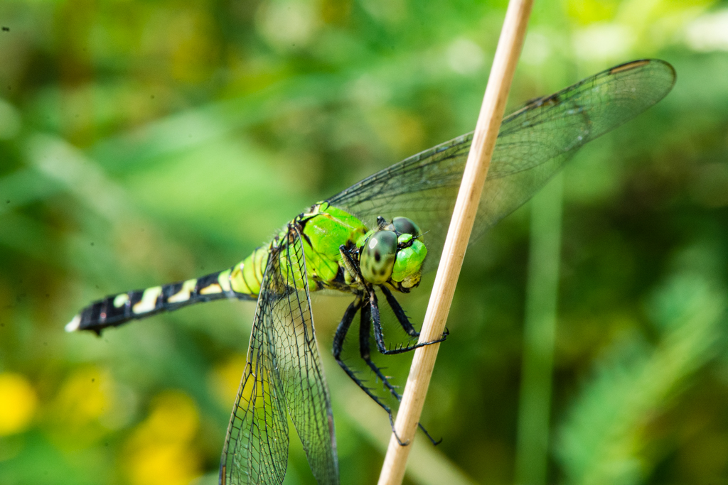 On Saturday, I went up to Durant Park with my camera and took a slow walk around the lower lake. I was especially on the look out for butterflies, dragonflies, and spiders. Most of the large butterflies were gone, but I got a few images of tiny (less than .5 inch wingspan) skippers. There were quite a few of the locally common dragonflies. Most were flying fast, but an Eastern Pondhawk posed for me. A few leaves were falling.
