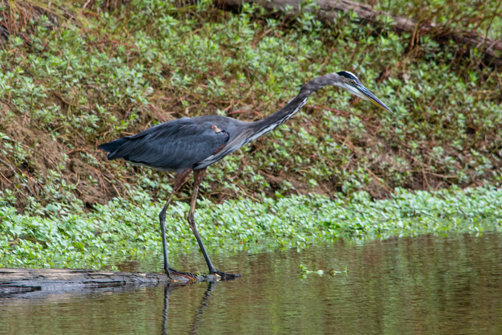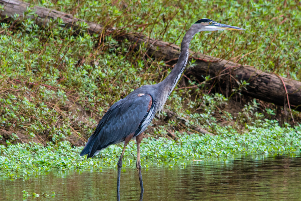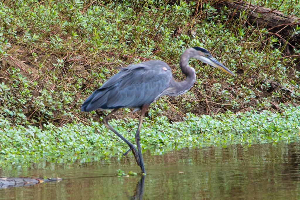 After reading of this and other unsettling things and finishing my coffee, I drove up to Falls Lake to look for birds and insects. I hadn’t been there in a while. My plan was to explore several spots, but I discovered they now charge $6 for the main areas. I found my way to a non-charging spot in the Beaverdam reservoir area, where the road was almost too rough and rutted for low-slung Clara. I spent twenty minutes or so watching this blue heron move very very slowly. I kept hoping she’d catch a fish, but she didn’t.