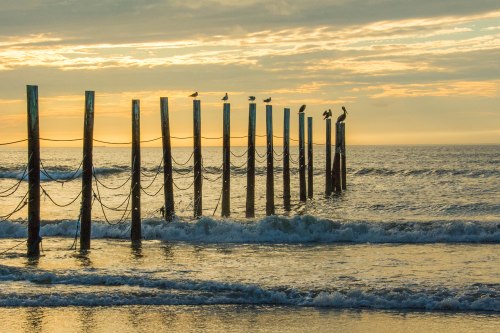 We had a family gathering at the Outer Banks for the Fourth of July Weekend. My sister and her family made us welcome at their place in Corolla, and we did what you do at the beach: some reading, dipping in the ocean, walking on the beach, getting sunburned. I went out at sunrise with my camera and tripod. I took some pictures of pelicans, got my new SUV stuck in the sand, and needed a pull to get out. We ate and drank too much, and had some good laughs.