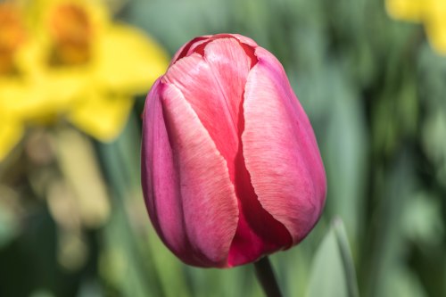 I went over to Sarah P. Duke Gardens on Saturday morning to check on early spring flowers. After a mild week, the temperature dropped almost to freezing on Friday night. It was sunny but cold and windy when I got there. It must have been difficult for the early plants, though the daffodils and a few tulips looked cheerful.