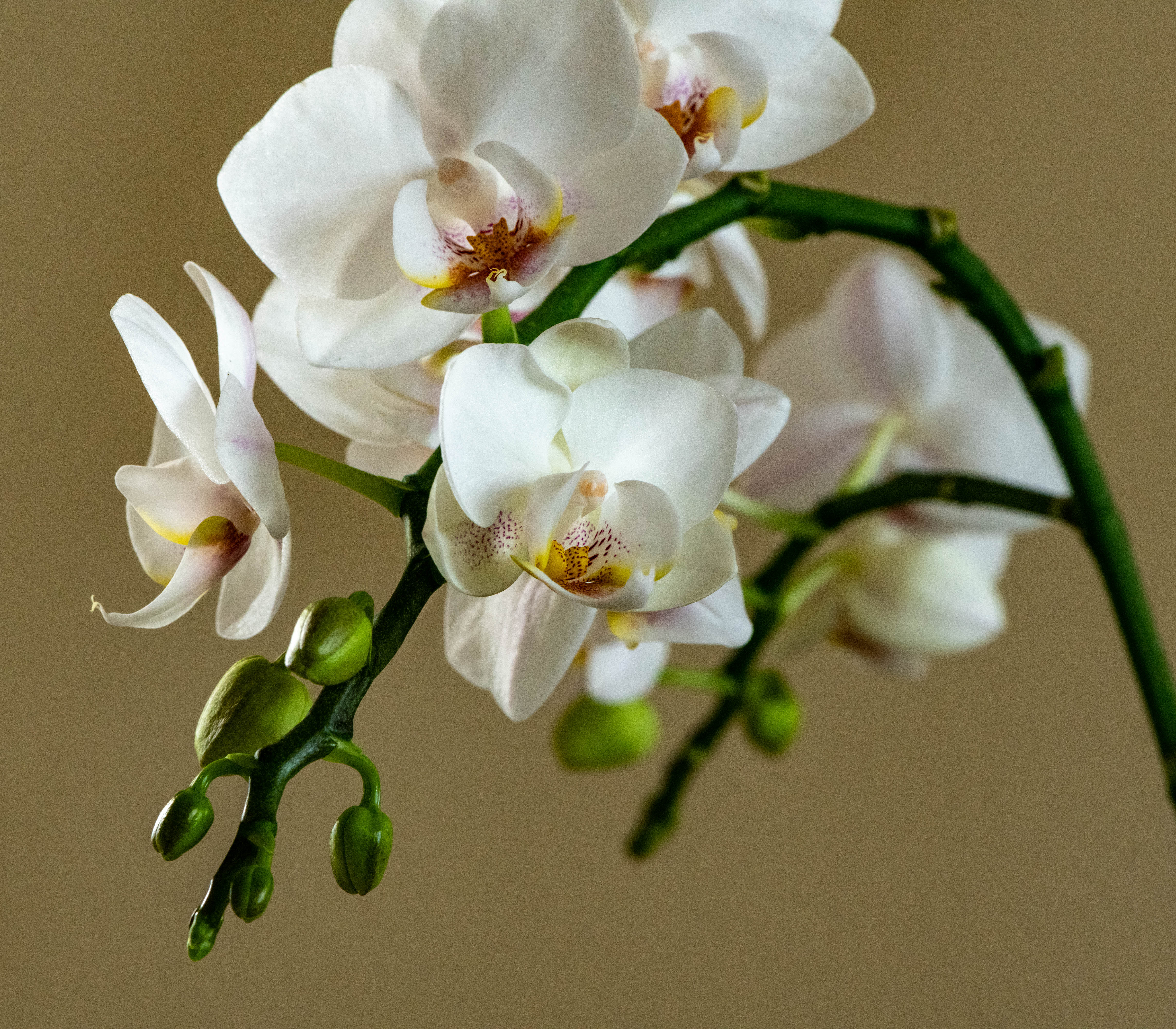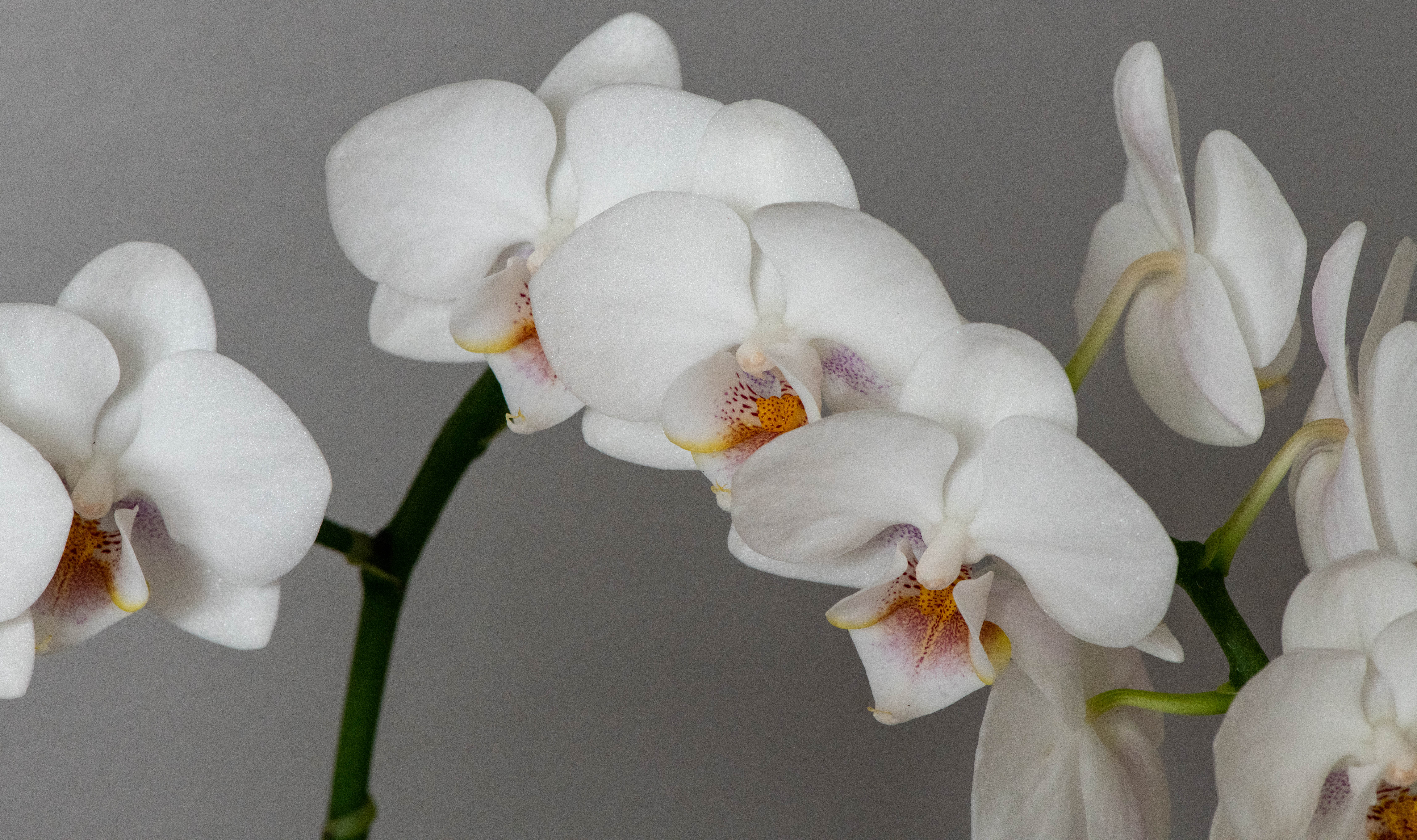 It cheered me up when Sally brought home a new orchid, and I enjoyed taking some pictures of the pristine beauty in the early morning light. I found the work absorbing. In addition to visual imagination, it takes a bunch of equipment and software: a Nikon D850 (full frame), a Nikkor 105mm f/2.8 macro lens, focus rails on a tripod, and a cable release. I sort and process the images in Adobe Lightroom, and tweak some of them with Photoshop and Helicon Focus. I consider the images here works in progress, but I like them, and thought they were worth sharing.