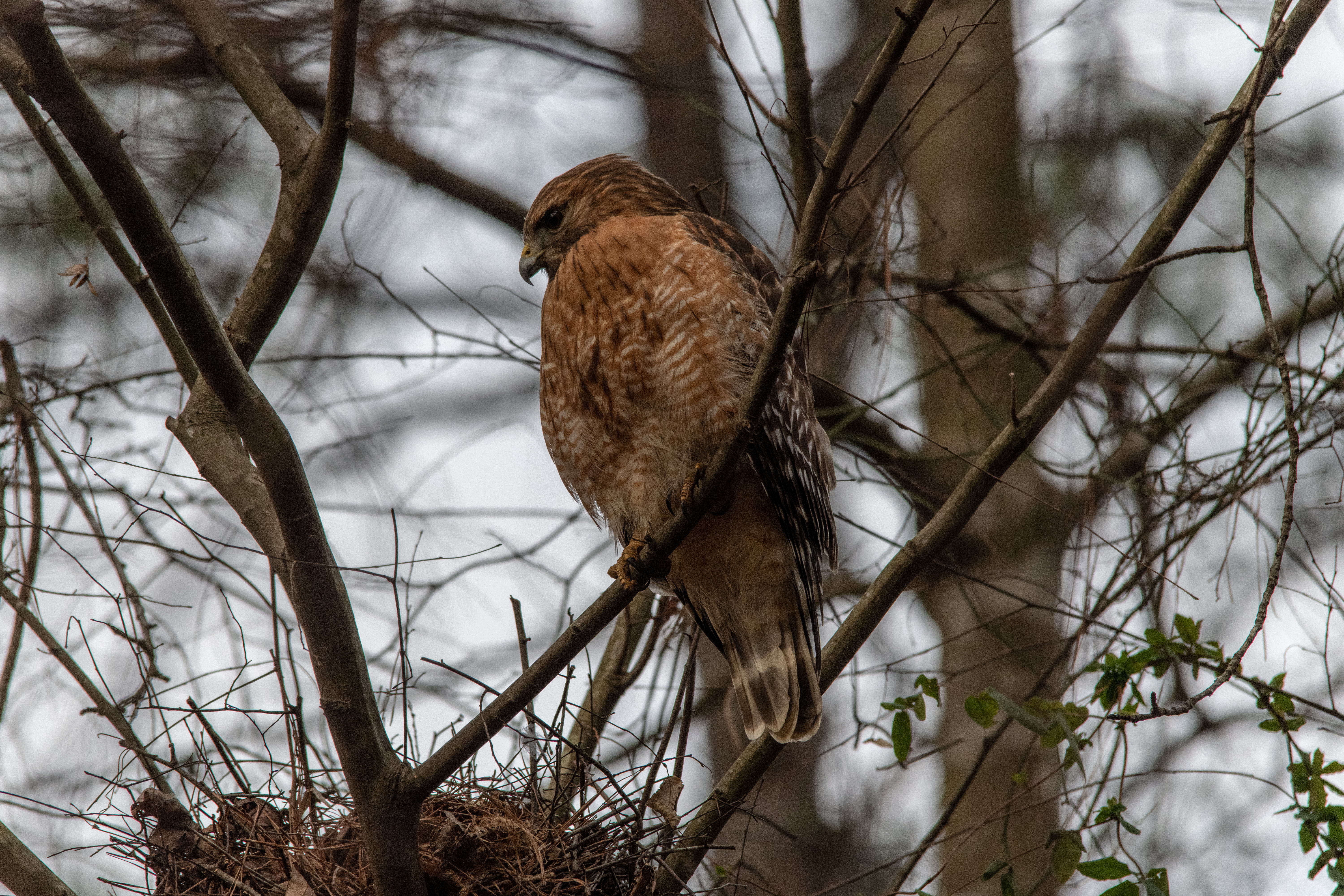 On Saturday and Sunday mornings I went up to Shelley Lake to see if I could spot and photograph the eagles. I had no luck on Saturday, though I enjoyed walking around the lake and seeing other birds. On Sunday I located the eagles’ nest and got a brief view of one of them, but it flew before I could raise the camera. I waited around for a while hoping it would return, and some other nature lovers stopped to share eagle news. A photographer named Don said that his buddy got a shot of the eagles mating a couple of weeks ago, which could result in eaglets in a month or so. I didn’t see the eagle again, but I did get a close view of (I think) a red-shouldered hawk.