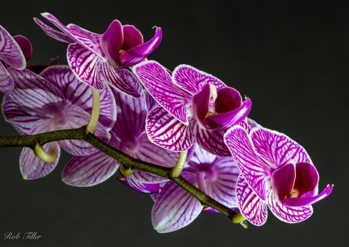 Sally’s three orchids are blooming! They lost their flowers at different times last year and looked about as dead as house plants could look. But she nursed the sad little remnants lovingly and hopefully, and a few weeks ago, they all decided to revive. Together, as though they had planned it!