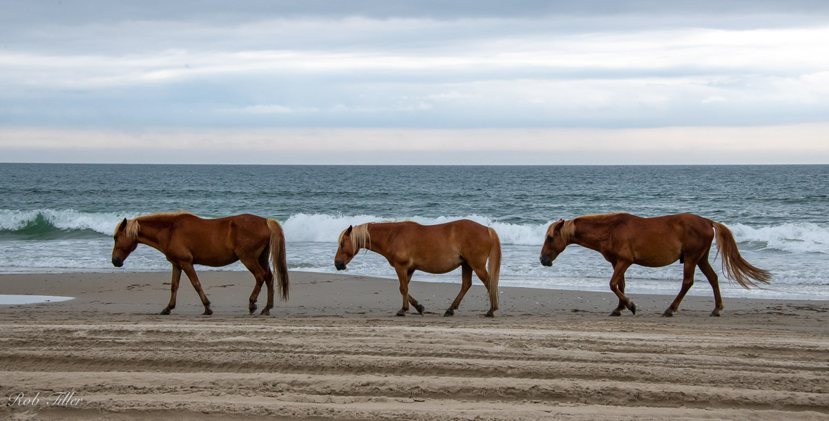 We had pleasant weather, and the water was warm enough for swimming, though some straw had washed up on the beach during a previous storm. Just north of Corolla, the beach is open to four wheel drive vehicles, and I took mine up there to look for the resident wild horses. I made these pictures, among others. It was cheering to see these big animals making their own way and looking calm and reasonably healthy.