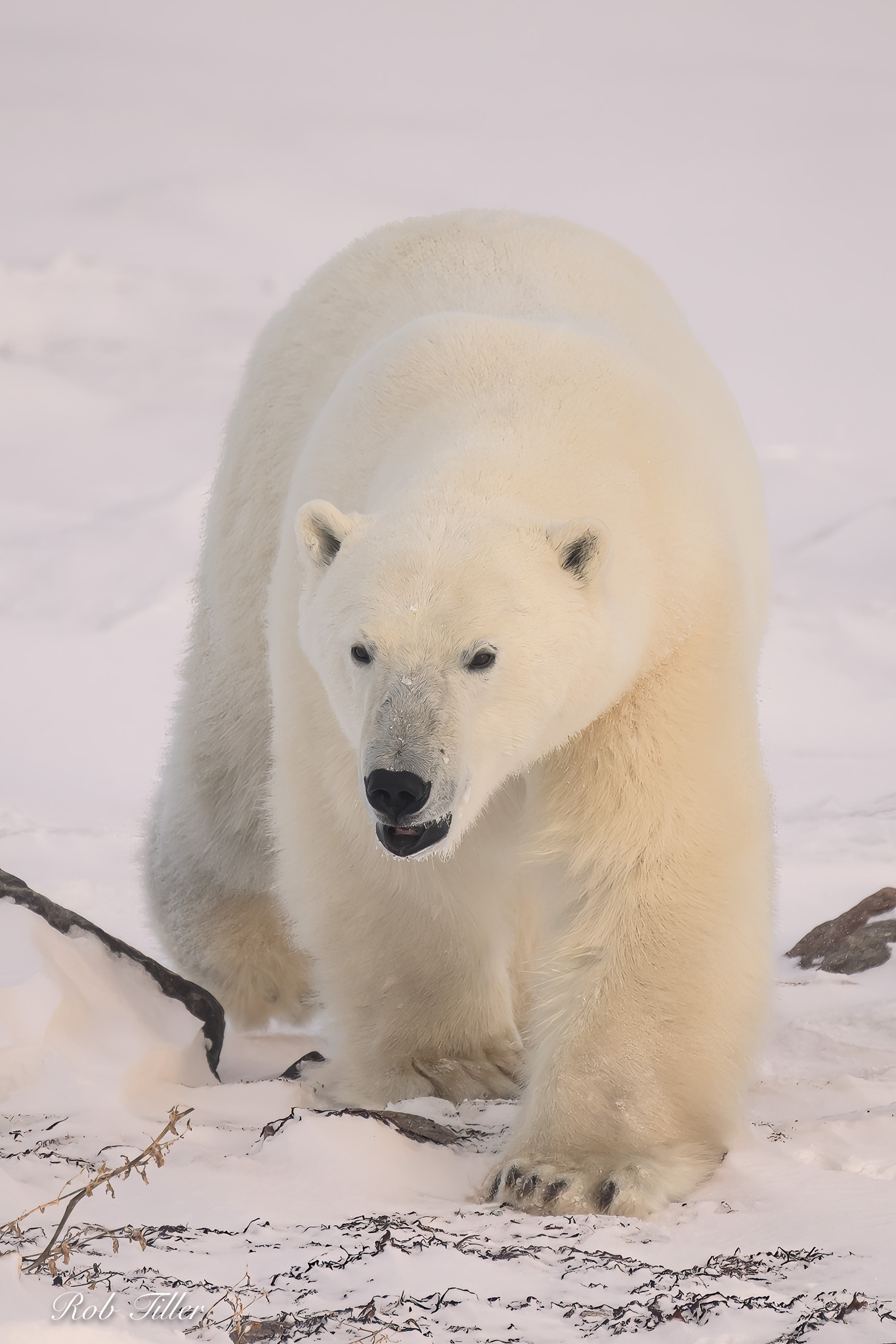 Polar bears’ primary food is seals, which they capture on the ice. When I was there, the bears were waiting for the Hudson Bay to freeze, which was a bit behind schedule, with warmer temperatures than normal. The bears hadn’t eaten a substantial meal for some months, but most of them looked healthy.