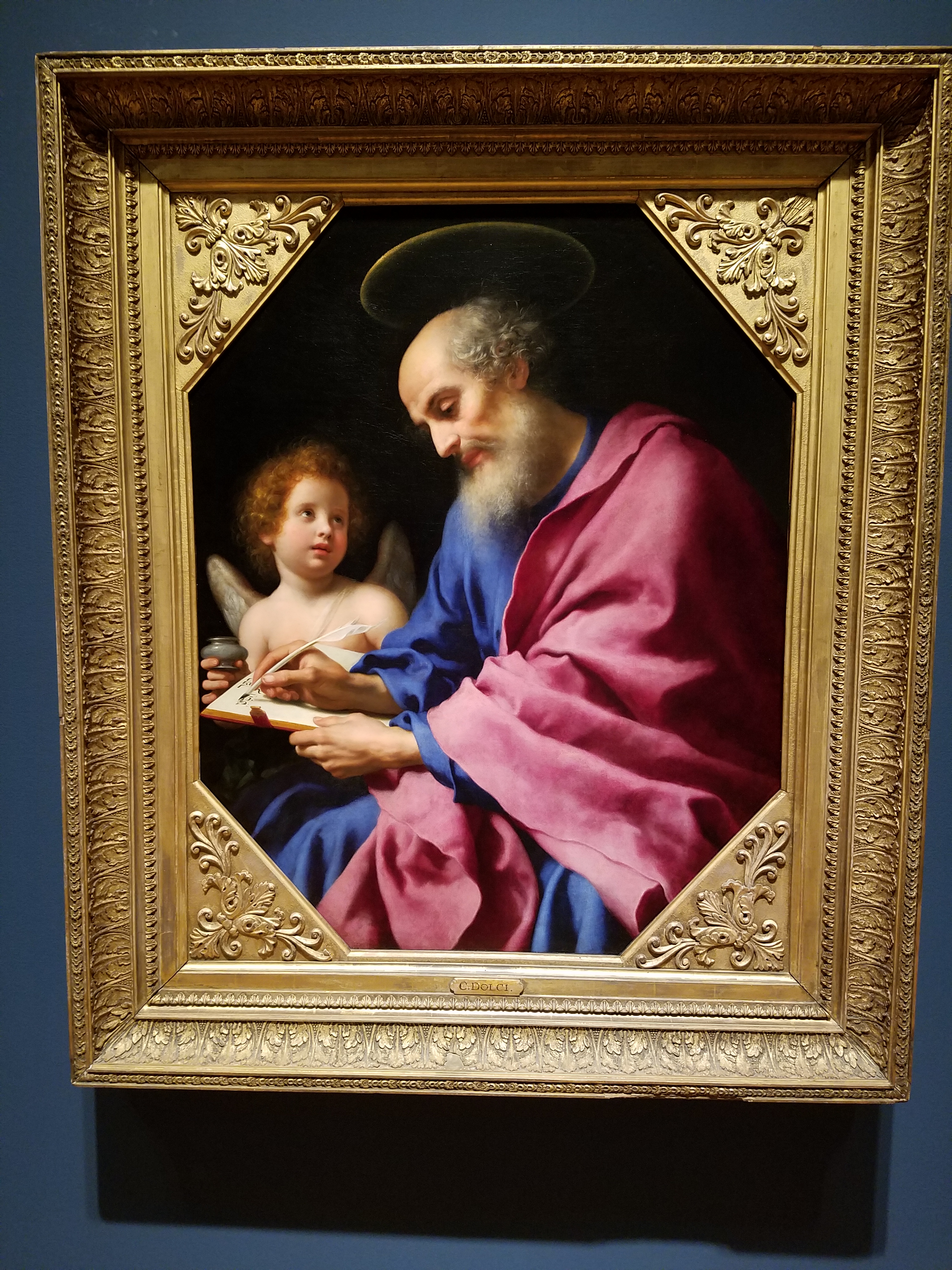 Afterwards I stopped in Durham at the Nasher Museum to see the Carlo Dolci exhibit. Dolci was a favored court painter for the Medicis in Florence in the 1600s. Apparently he fell out of favor among art critics in the 19th century, and this is the first major exhibit of his work. Dolci apparently was a pious Catholic, and in his work mostly focused on the popular religious subjects of the time, usually with close attention to two or three figures. He had a great color sense, and fanatical attention to detail. And amazing commitment and endurance: some of these paintings took several years to paint.
