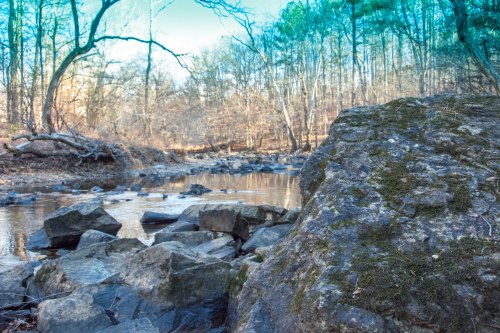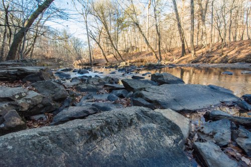 On Saturday morning I drove over to Eno River State Park and hiked in the Fews Ford area. There was frost on the grass, and some ice on the river, but it was sunny and calm. A flock of robins was hunting for breakfast. I stepped carefully on the rocks and didn’t get wet or twist an ankle, and got these pictures.