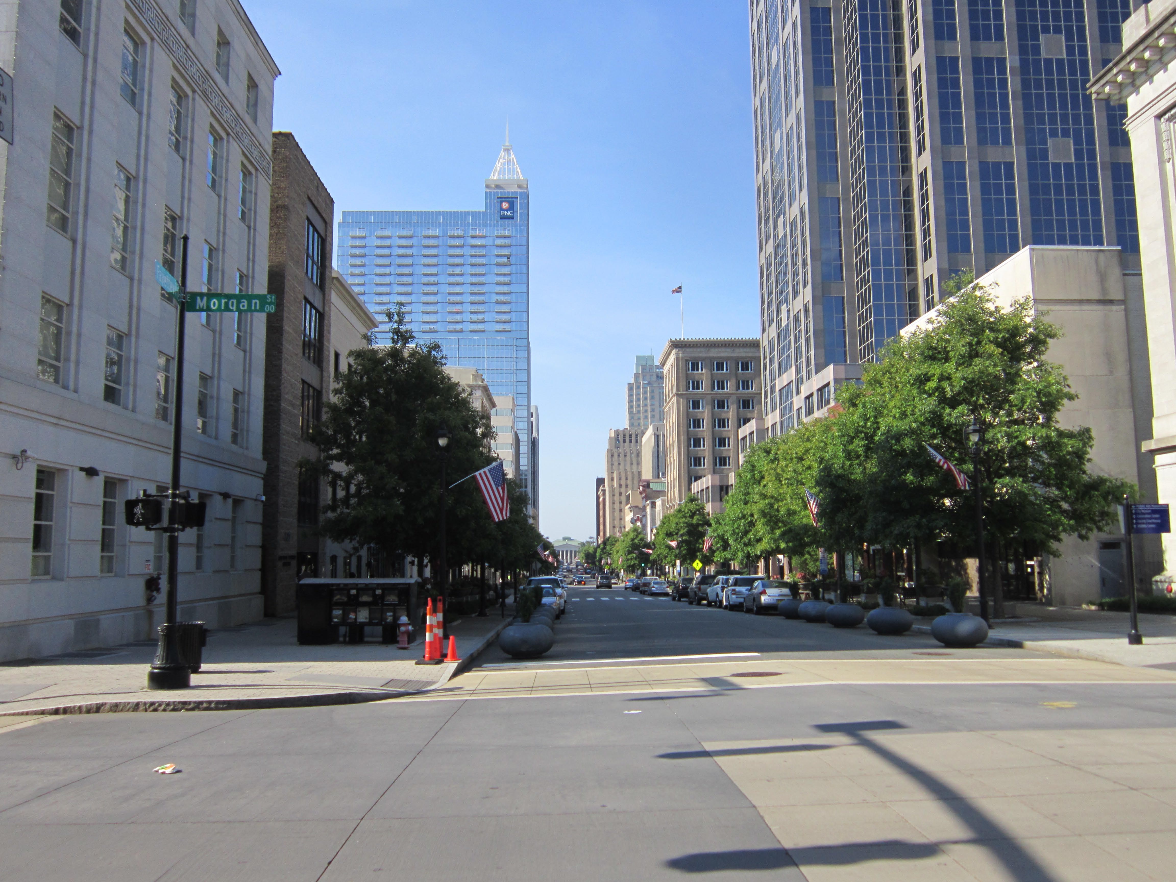 Now that we’ve moved our offices into Red Hat Tower, I’m within walking distance of work. How sweet it is! Last week I went carless three times. If I focus on moving along, I can make it in seventeen minutes. On a warm, humid day, that leaves me in a bit of a lather. On Thursday, I went a little slower, and took some pictures with my trusty Canon point-and-shoot, which are above and below in the order they were taken.