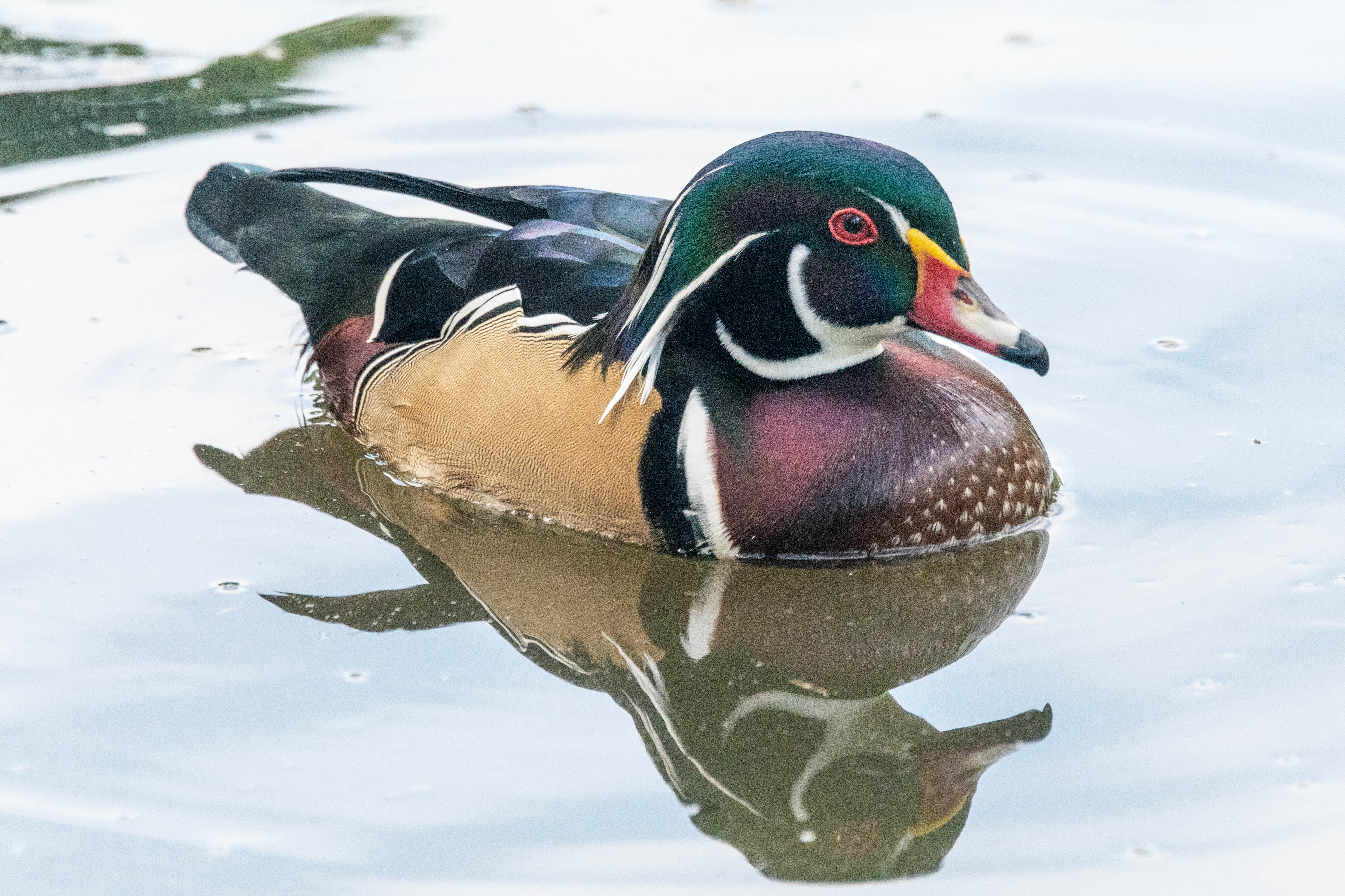 I did, however, find a Wood Duck. At the pond, there was a crowd of more ordinary ducks hoping to get fed, and among them was this spectacular creature. The Wood Duck’s name is completely misleading. It could more aptly be called the Heart Breakingly Beautiful Hallucinogenic Duck. Its iridescent colors and varied patterns are vivid and thrilling.