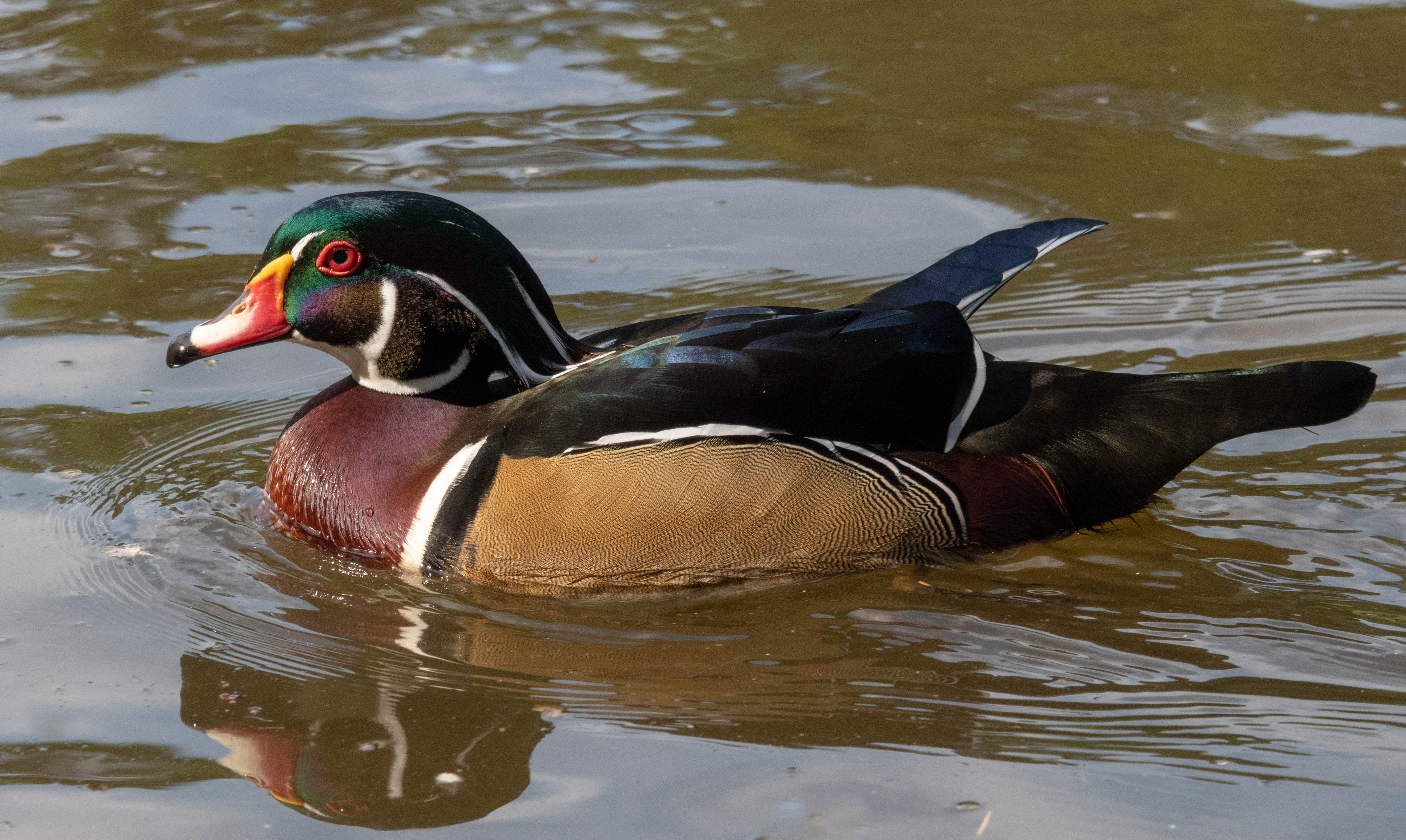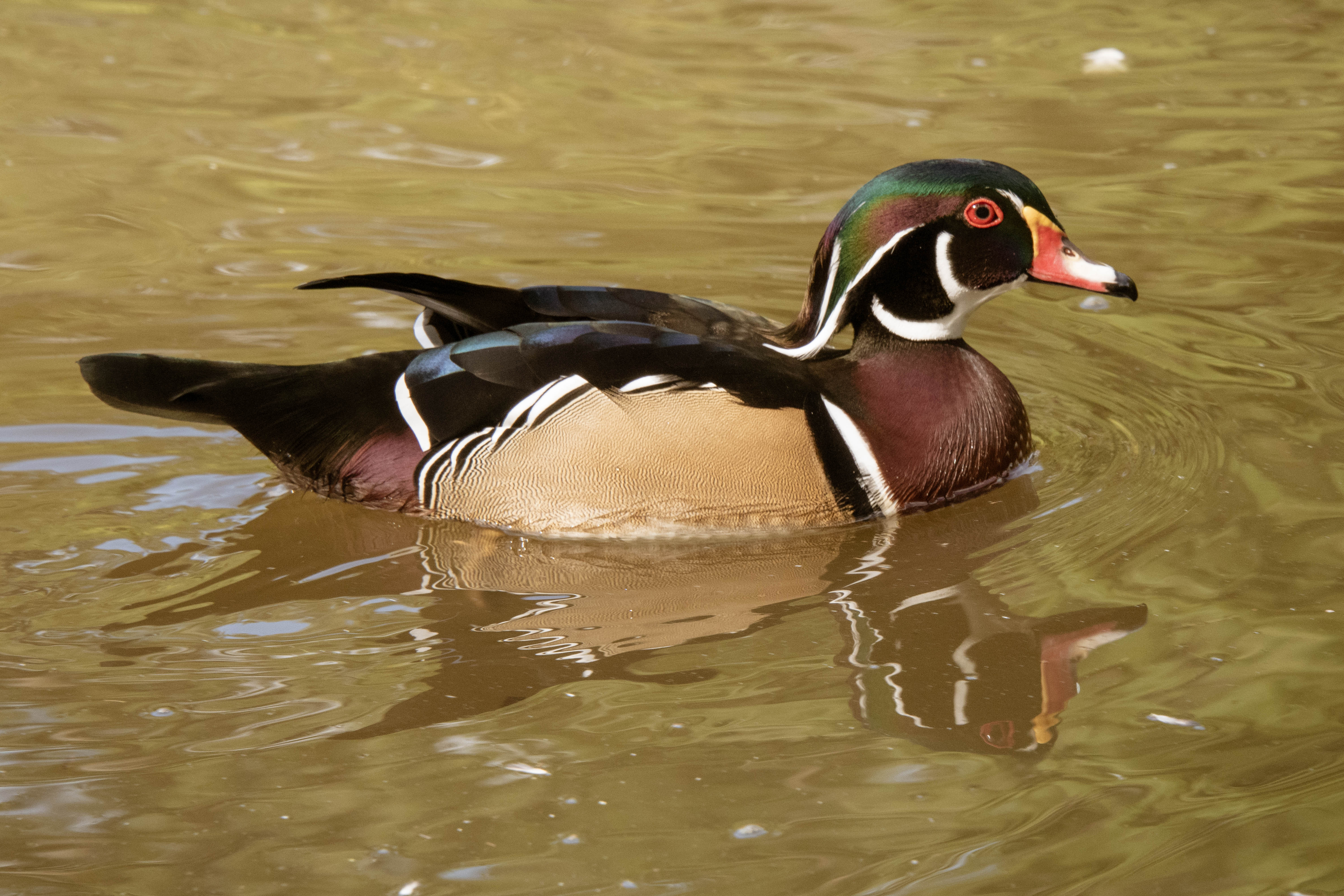 These spectacular creatures are usually shy, and I’ve only seen them a couple of times in the distance. This one must have gotten used to people who feed the ducks. Anyhow, he swam within five feet of me, and I felt honored.