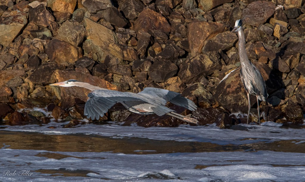 When I went out to Jordan Lake late Wednesday afternoon, I saw my first osprey of the year perched in a pine across the river. I put my camera on the tripod and waited for it to fly before dark, but it didn’t. However, when I went back on Friday afternoon, there were a couple of them patrolling, and in the last patch of sunset on the river, I caught one catching a fish. I also saw many great blue herons, and one young bald eagle.