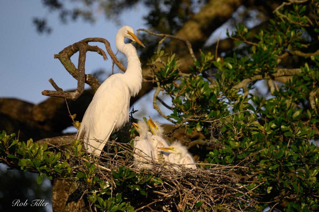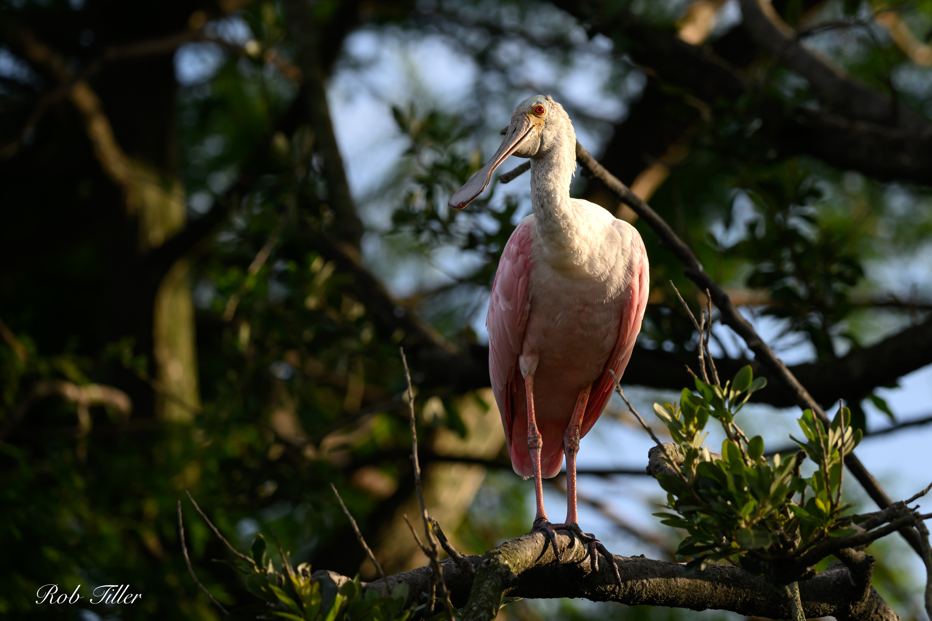 I went down to St. Augustine, Florida, a couple of weeks ago to photograph some of the big wading birds there.  I took a lot of photos at the Alligator Farm, where there’s a rookery of nesting great egrets, snowy egrets, cattle egrets, little blue herons, tricolored herons, wood storks, white ibises, and (my favorite) roseate spoonbills.  The birds hatch their chicks in trees over a big pond area full of alligators.  Apparently the birds feel safe and protected from tree-climbing predators there.