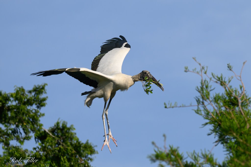 A board walk above many alligators curves through trees, and the birds build their nests in those trees.  Some nests are almost close enough to reach out and touch, and others not much farther.  The birds sit on eggs, or feed the hatchlings, and fly back and forth to get new twigs for their nests.  At times it’s relaxed and peaceful, but their are also unhappy hungry fledglings, squabbles between neighbors, and mating rituals between partners.