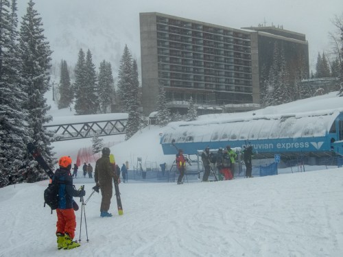 Last week I got to ski in Banff National Park in Alberta, Canada. It was amazingly beautiful there, with vistas that rivaled the Alps. There had been less-than-average snowfall, but there was enough coverage for many excellent runs through varied and challenging terrain. I sampled the Lake Louise area, and spent the majority of my time at the Sunshine resort.