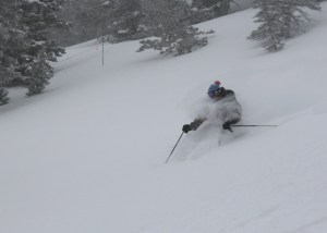 Moguls — aka bumps, or areas of irregular snow that form in steep areas — are terrifying for beginners, frustrating for intermediates, and challenging in varying degrees for those more advanced. If you want to ski the steep wild places, you just need to figure out moguls, and there’s no simple solution. It’s like three-dimensional chess – or make that speed chess. We complimented Gabe on how smooth and strong he looked in the tough mogul runs, and he noted, with admirably humility, that it only took him five years of work.