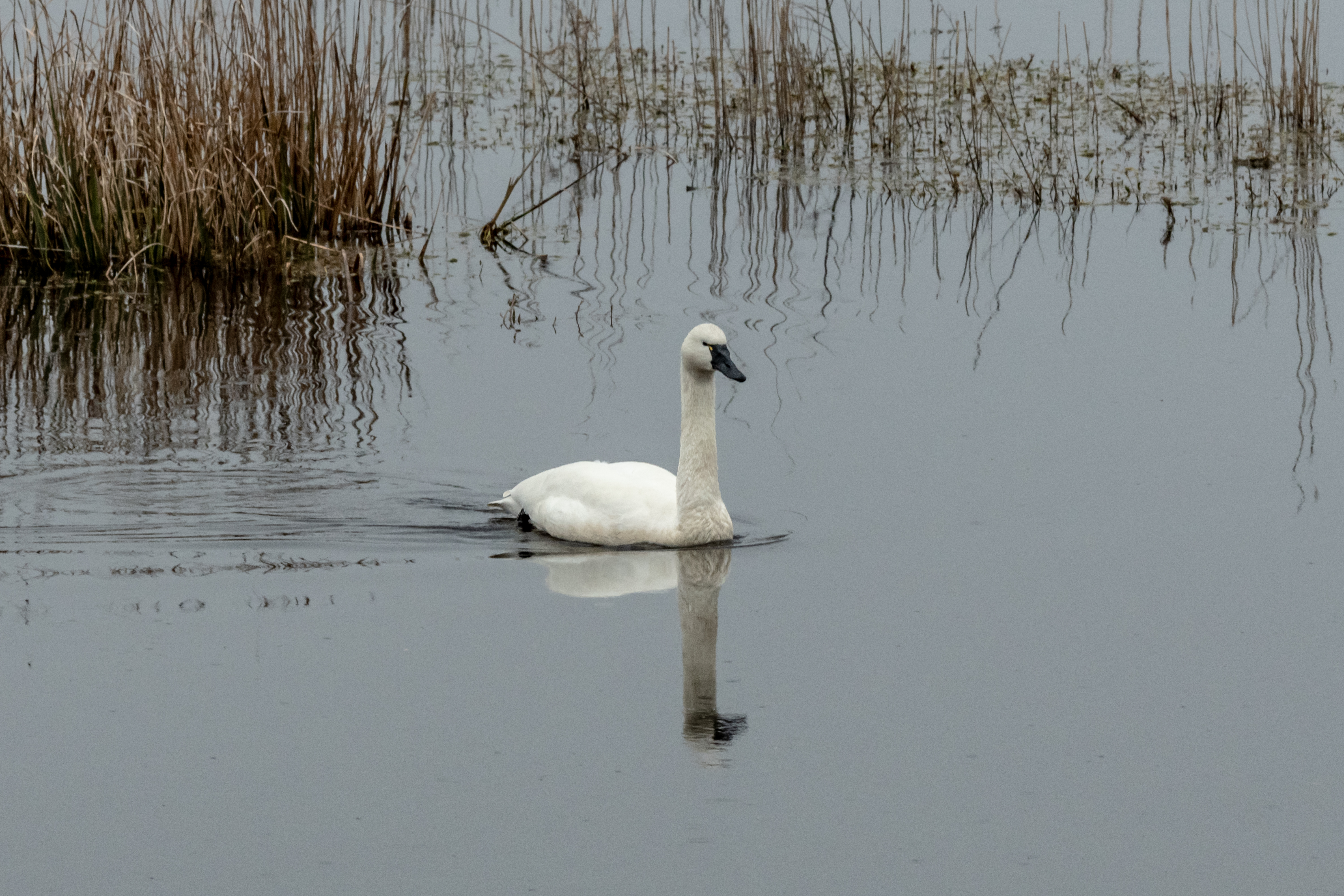 The swans are strong, graceful flyers, and calm, stately swimmers. But they have to work hard to get airborne! From a seat on the water, they flap vigorously while running along the surface.